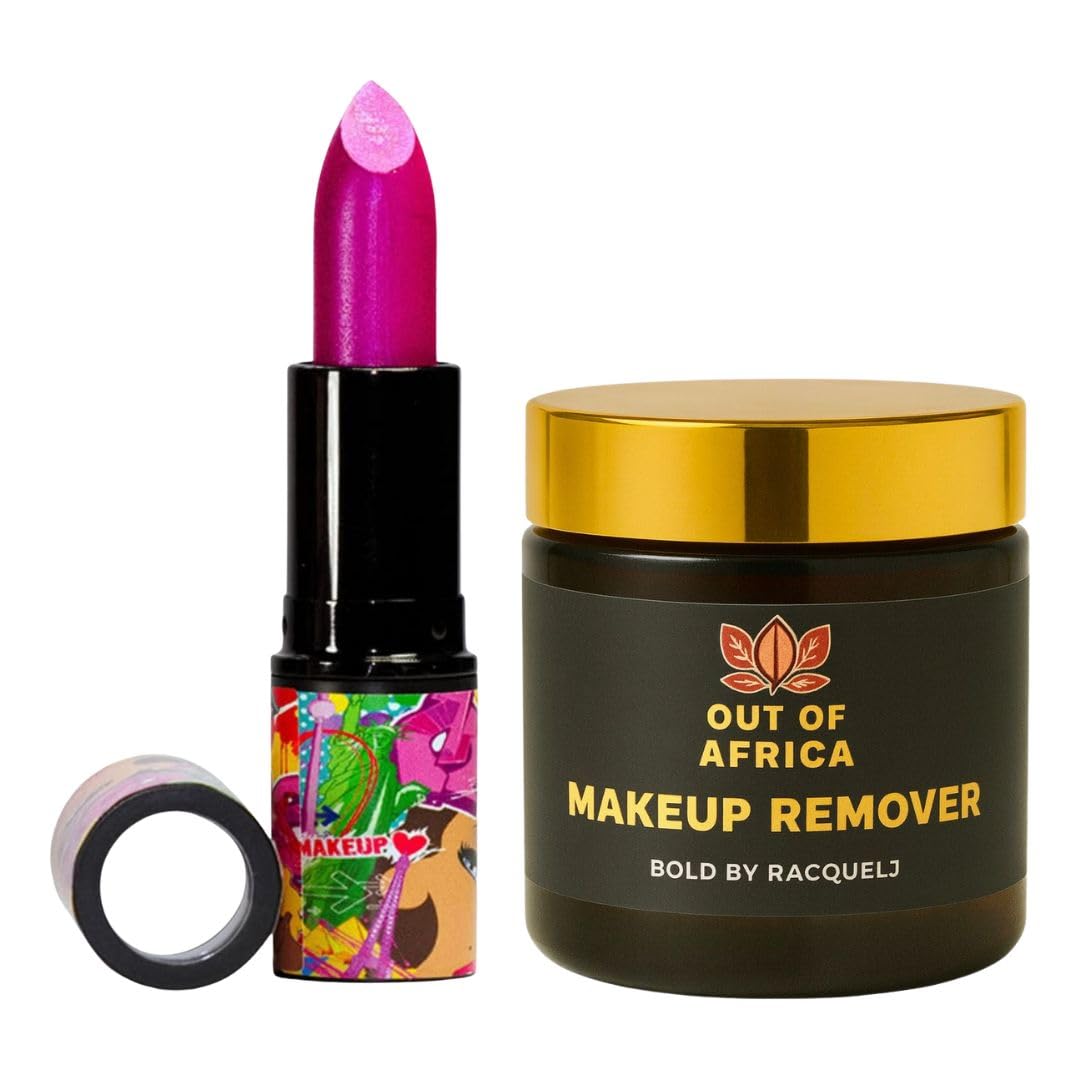 ?Bold by RacquelJ: The makeup brand for every look, style and skin tone. Perfect Duo Set: Ideal for gifting or daily indulgence — vibrant color meets gentle, luxurious skincare. Safe Ethical: Paraben-free, cruelty-free, and suitable for all skin types, including sensitive skin. Hydrating Nourishing: Both products moisturize — lipstick glides on smoothly, remover restores and protects lips and skin. Luxury Makeup Removal: Shea butter balm gently dissolves makeup, enriched with vitamin E for deep cleansing and soft, nourished skin. Vibrant Satin Lipstick: Flaming Fuchsia ultra-smooth lipstick delivers longwear, smudge-resistant color while keeping lips hydrated.