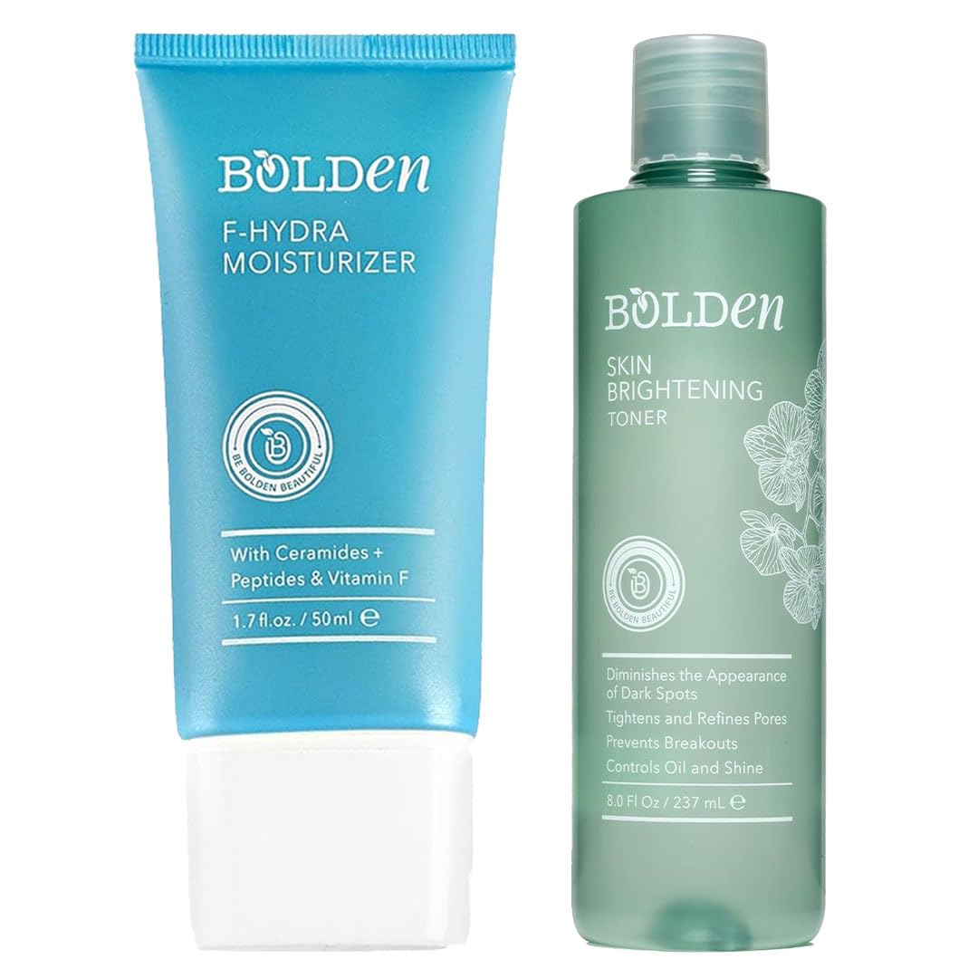 Bolden Skin Brightening Toner & F-Hydra Moisturizer Bundle | Targets Dark Spots Oil & Dryness | with Glycolic Acid Niacinamide Hyaluronic Acid Ceramides & Vitamin F | 8.0 fl oz + 1.7 fl oz