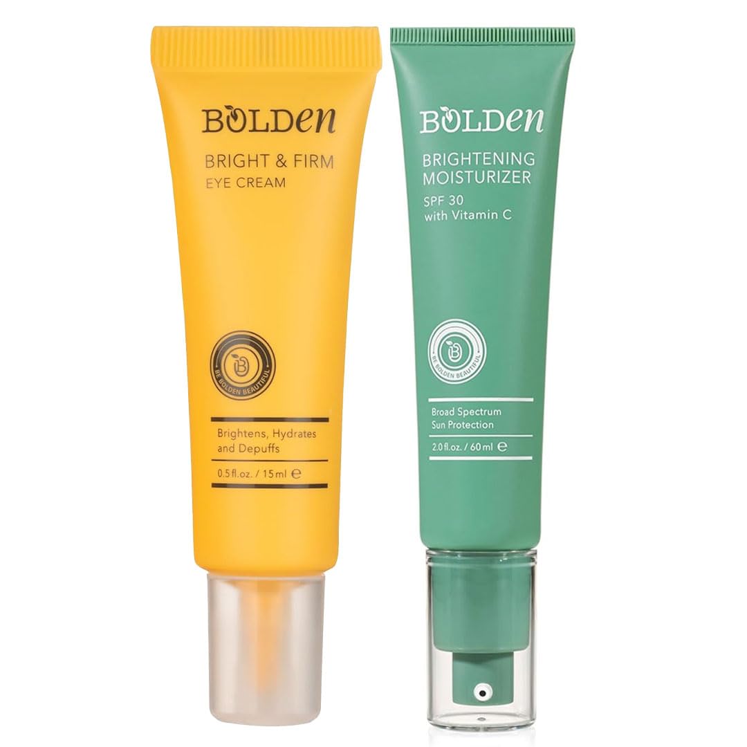 A daily skincare bundle featuring Bolden's SPF 30 Vitamin C Moisturizer and Bright Firm Eye Cream. Includes a clear-applying sunscreen and a fragrance-free eye cream to complement your morning routine.
