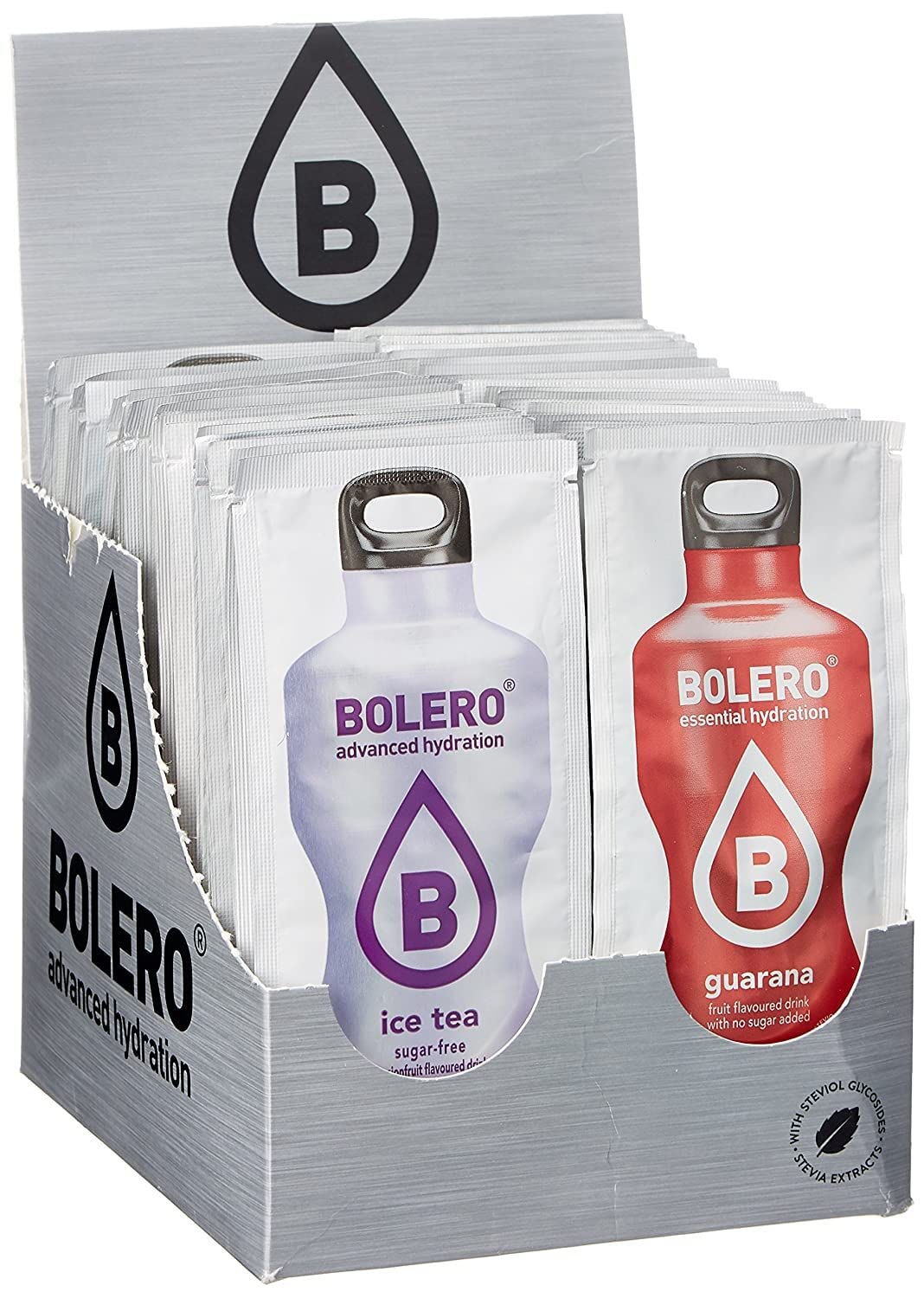Ingredients: Acidifier: citric acid, malic acid maltodextrin flavoring sweeteners: aspartame , aceulfame K acidity regulator: trisodium citrate anti-caking agent: tricalcium phosphate thickener: xanthan gum, carboxymethylcellulose, gum arabic vitamin C colors: chlorophyll copper complexes, cumin. Contains a source of phenylalanine. INGREDIENTS Based on the Lime flavor example: Acidifier: citric acid, malic acid maltodextrin flavorings natural flavorings sweeteners: acesulfame K, sucralose, glycosides acidity regulator: trisodium citrate anti-caking agent: tricalcium phosphate thickener: guar gum, gum arabic. L-ascorbic acid (vitamin C) colour: copper complexes of chlorophyll and chlorophyllins, curcumin.Bolero Drinks Kit d'apprentissage (48 variétés), 429 g, pour boissons 72 litresDESCRIPTION DU PRODUIT DESCRIPTION DU PRODUIT Ingrédients : acidifiant : acide citrique, acide pomme, maltodextrine, arôme, édulcorants : aspartame , acéulfam-K régulateur d'acidité : citrate de trinadium, agent anti-agglomérant : phosphate tricalcium, épaississant, xanthane, carboxyméthylcellulose, gomme arabique vitamine C colorants : complexes de cuivre de chlorophylle, cuc. umin Contient une Source de phénylalanine. INGRÉDIENTS Sur l'exemple de saveurs Limet: acidifiant: acide citrique, malique maltodextrine arômes arômes naturels édulcorants: acésulfame-K, sucralose, glycosides régulateur d'acidité: citrate trisodique agent de séparation: phosphate tricalcique épaississant : gomme de guar, Caoutchouc arabique au acide L-ascorbique (vitamine C) colorant: complexes de cuivre de chlorophylle et de chlorophyllines, curcumine.