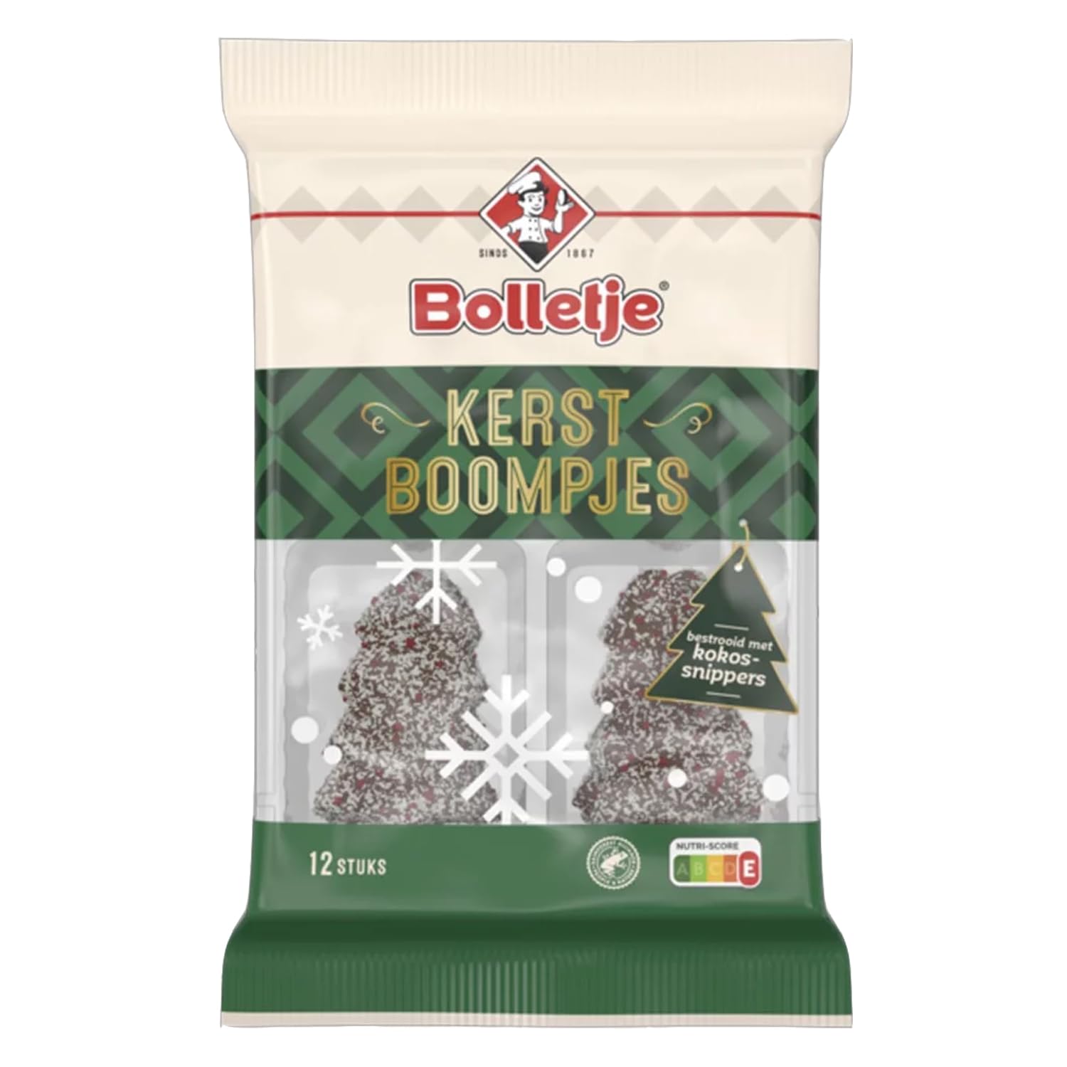Bolletje Kerstboompjes consists of 12 delicious onion cookies decorated with a chocolate coating and coconut shavings. They have a wonderfully chocolatey taste, and thanks to the delicious coconut shavings, they are also something very special. Bolletje Kerstboompjes originate from the Netherlands. Bolletje is one of the best-known Dutch brands for its onion paste (Schuit). The Schuit is also at the heart of these cookies. Coated in creamy milk chocolate and decorated with coconut, they offer a wonderfully creamy taste that is sometimes quite different from standard supermarket cookies. 12 cookies, a total of 150g. Milk chocolate 45 (sugar, cocoa butter, cocoa mass, skimmed milk powder milk fat, emulsifier (soy, soy lecithin), natural flavouring), wheat flour, sugar, coconut flakes 8.5 , vegetable oils (palm, bean), decorative sugar. (Sugar, radish, lemon and blackcurrant concentrate, icing (E901), invert sugar syrup, leavening agents (E500, E450), salt, flavoring. May contain traces of other cereals, nuts, eggs, and sesame seeds. Store in a cool, dry place. Protect from heat. Manufacturer's product information: Manufacturer: Bolletje B.V. Address: Turfkade 9 plz., 7602PA, Almelo, Netherlands INGREDIENTS Milk chocolate 45 (sugar, cocoa butter, cocoa mass, skimmed milk powder, milk fat, emulsifier (soy lecithin), natural flavoring), wheat flour, sugar, skimmed milk 8.5 , vegetable oils (palm, beetroot), wheat starch, decorative sugar (sugar, radish, lemon and blackcurrant concentrate, E901)) Invert sugar syrup, yeast (E500, E450), salt, flavoring. May contain traces of other cereals, nuts, eggs, and sesame seeds. Store in a cool, dry place. Protect from heat.Bolletje Kerstboompjes I Biscuits au chocolat avec des copeaux de noix de coco I Biscuits de Noël I 150 gDESCRIPTION DU PRODUIT DESCRIPTION DU PRODUIT Bolletje Kerstboompjes est composé de 12 délicieuses biscuits aux oignons décorés avec un manteau de chocolat et des râpes de coco. Ils ont un goût merveilleusement chocolat et grâce aux délicieuses râpes en coco, ils sont en même temps quelque chose de très spécial. Bolletje Kerstboompjes proviennent des Pays-Bas. Bolletje est l'une des marques néerlandaises les plus connues pour les oignons néerlandais (Schuit). L'Schuit se trouve également au cœur des boumpjes. Enrobé de chocolat au lait crémeux et décoré de coco, vous aurez un goût merveilleusement crémeux et parfois très différent des gâteaux d'épicerie standard des supermarchés. 12 biscuits, un total de 150 g. Chocolat au lait 45 (sucre, beurre de cacao, pâte de cacao, poudre de lait mager graisse de lait, émulsifiant (soja, lécithine de soja), arôme naturel), farine de blé, sucre, écailles de noix de coco 8,5 , huiles végétales (palmiers, fèvres), sucre décor. (sucre, radis, Concentré de citron et de cassis, glaçage (E901), sirop de sucre invert, levure (E500, E450), sel, arôme. Peut contenir des traces d'autres céréales, noix, œufs et graines de sésame. Conserver dans un endroit frais et sec. Protéger de la chaleur. Informations du fabricant sur l'article : fabricant : Bolletje B.V. adresse : Turfkade 9 plz. : 7602PA Lieu : Almelo Land : Pays-Bas INGRÉDIENTS Chocolat au lait 45 (sucre, beurre de cacao, pâte de cacao, lait écrémé en poudre, matières grasses du lait , émulsifiant (lécithine de soja), arôme naturel), farine de blé, sucre, écrémé 8,5 , huiles végétales (palmiers, betteraves), amidon de blé, sucre décoratif (sucre, radis, concentré de citron et groseille, verre M (E90) 1)), sirop de sucre inverti, levure (E500, E450), sel, arôme. Peut contenir des traces d'autres céréales, noix, œufs et graines de sésame. Conserver au frais et au sec. Protéger de la chaleur
