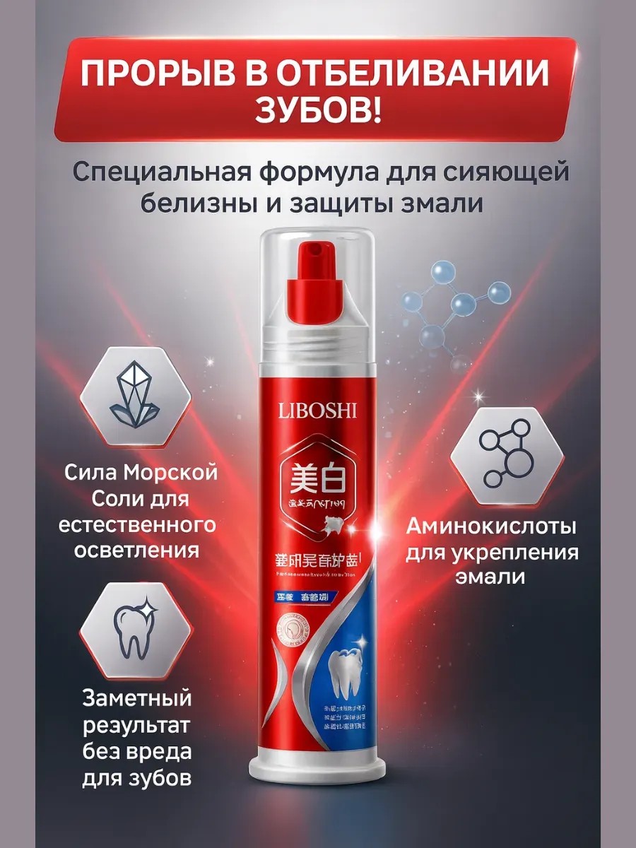 | Полное наименование товара | Зубная паста с дозатором, отбеливающая, удаление зубного камня, большой объём 120 г |