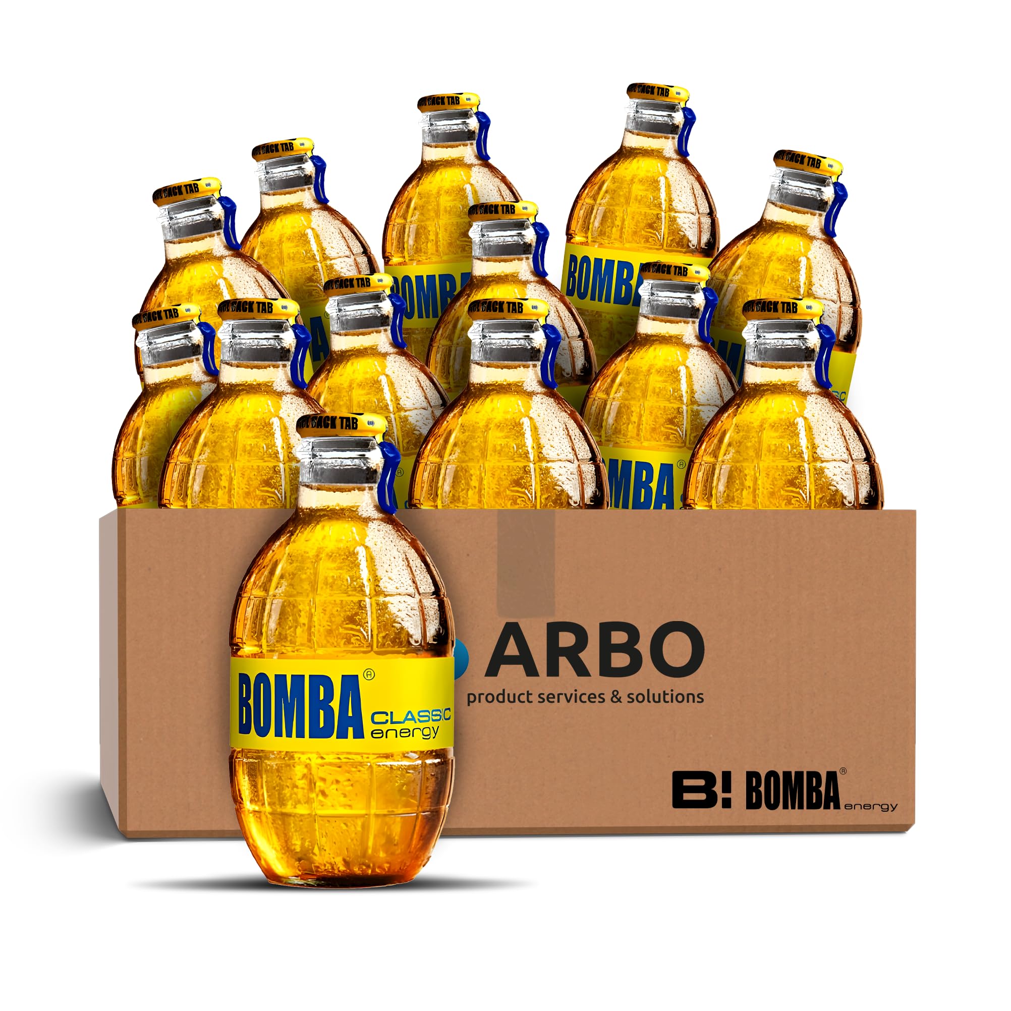 Bomba energy drink classic 12 x 250 ml refreshing drink in stylish glass bottle in 12pack ArBoLiving sticker