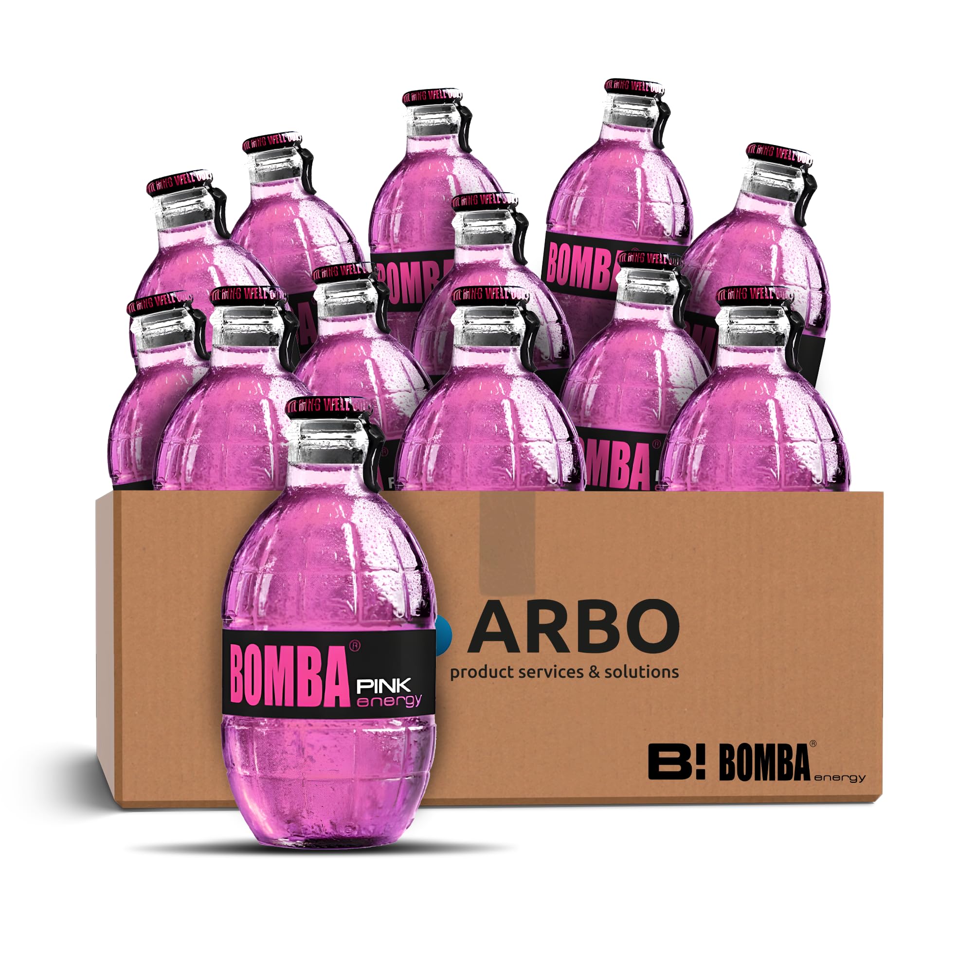 Bomba Energy Drink – the grenade energy kick in the handy 250 ml glass bottle INGREDIENTS Water, sugar, citric acid, carbon dioxide, sodium citrate, coffee (0.03 ), taurine (0.03 ), antioxidant, ascorbic acid, inositol (0.02 ), vitamins: niacin, pantothenic acid, vitamin B6, riboflavin, vitamin B12 preservatives E 2111. Stabilizers: gum arabic, sucrose acetate isobutyrate. Dyes: brilliant blue FCF, beta carotene.Bomba energiedrank roze (grapefruit) 12 x 250 ml - verfrissende drank in stijlvolle glazen fles in 12-pack ArBo-Living sticker Bomba Energydrink – de granaten energiekick in de handige glazen fles van 250 ml INGREDIËNTEN Water, suiker, citroenzuur, koolzuur, sodiumcitraat, koffie (0,03 ), taurine (0,03 ), antioxidant, ascorbinezuur, inositol (0,02 ), vitaminen: niacine, pantotheenisch zuur, vitamine B6, riboflavine, vitamine B12 converingsmiddelen E 2111. Stabilisatoren: Arabische gom, sucroseacetaat isobutyraat. Kleurstoffen: briljant blauw FCF, betacarotine.