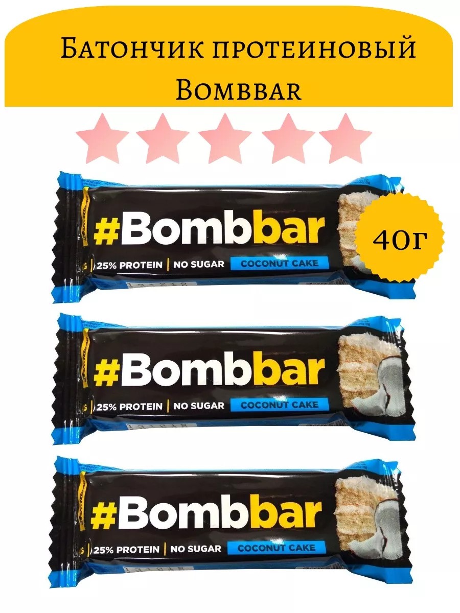 Bombbar Батончик протеиновый Кокосовый торт, 40г, 3шт