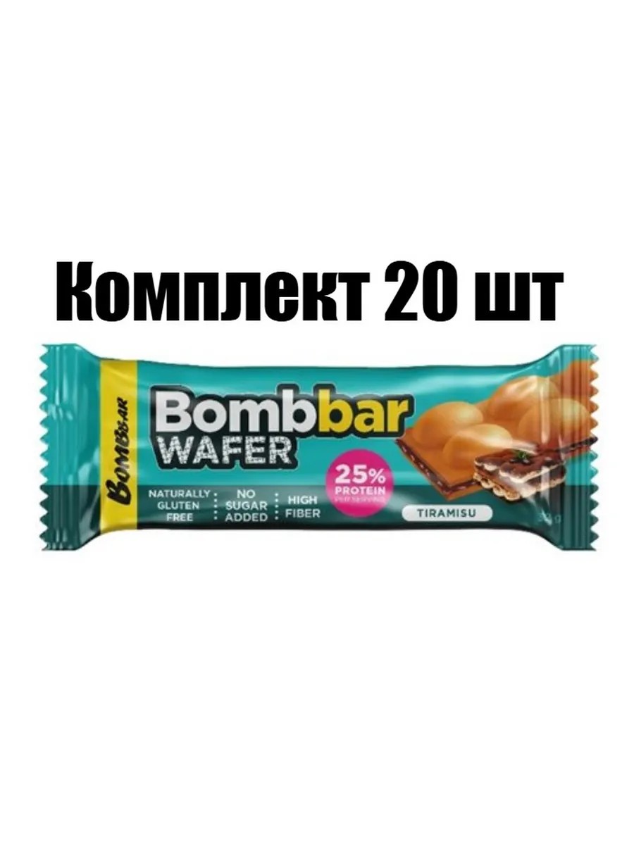 BOMBBAR Протеиновый батончик Тирамису вафельный с молочно-ореховой пастой, 32 гр, 20 шт. Встречайте новинку от Bombbar - вафельные батончики без сахара High Protein Waffer с высоким содержанием белка!