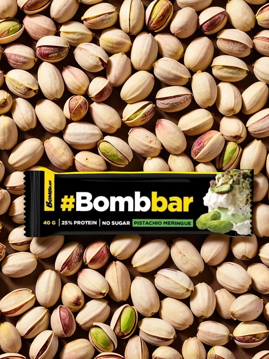 Bombbar батончик без сахара протеиновые фисташка - 12шт