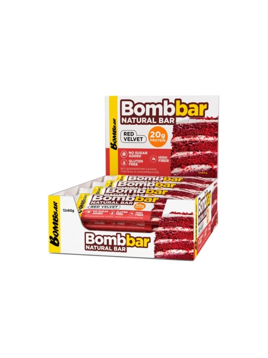 Bombbar Батончик без сахара со вкусом 20x60г Красный Брауни