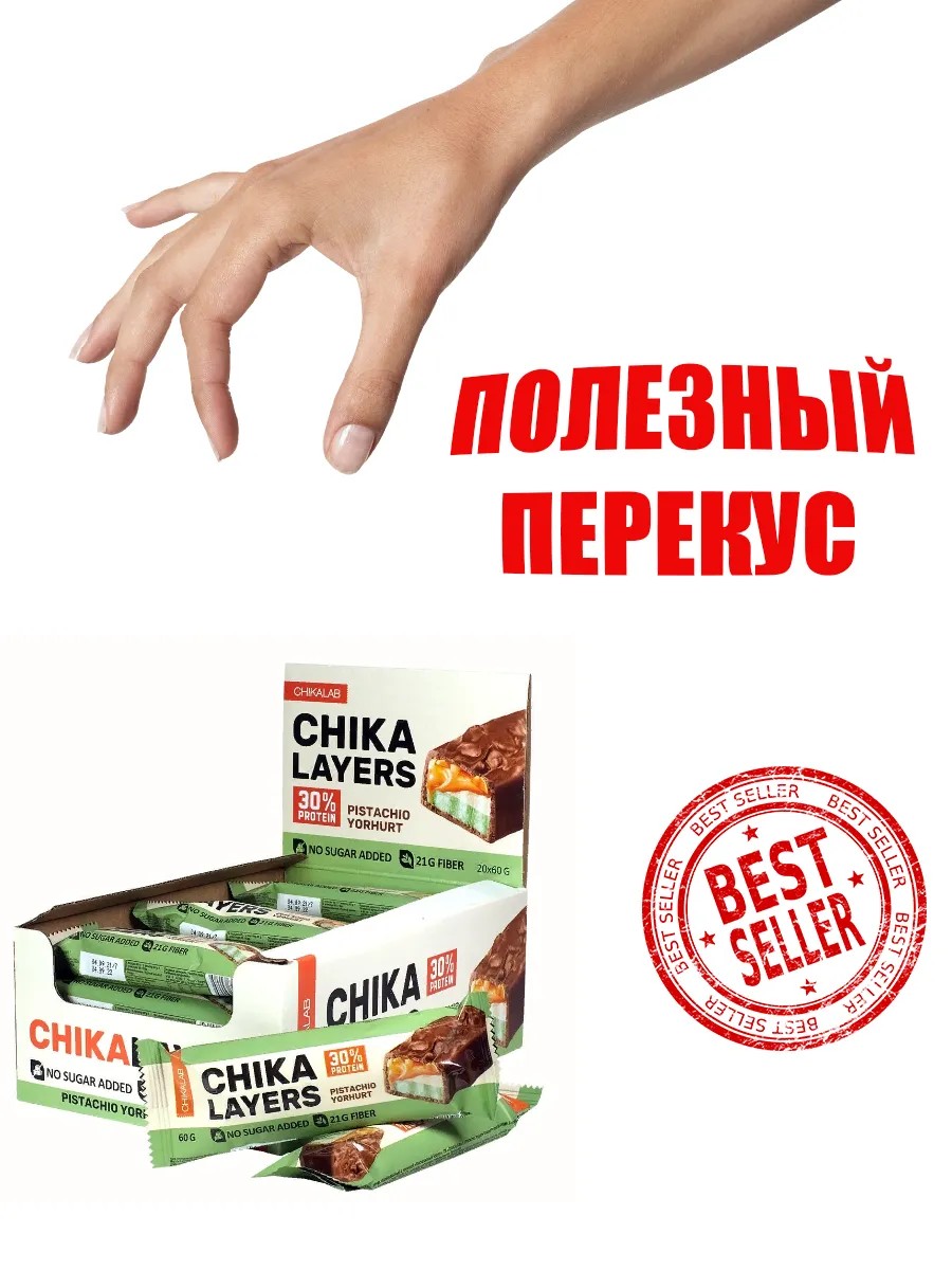 Chika Layers Bar от Chikalab - это уникальное предложение для любителей диетического лакомства. 5 слоёв, включая шоколадную глазурь, выделяют батончик своими непревзойденными вкусовыми характеристиками. А сочетание высокого содержания белка и клетчатки не оставляют шанса конкурентам по полезности. В начинку входит слой пралине, сверху белковая суфле, над которым стелится густая карамель, покрытая орехами. Трудно устоять перед таким сочетанием ингредиентов шоколадного батончика, тем более что большую часть это все представлено клетчаткой. Тем более белковая основа сформирована из высококачественных источников, включающих сывороточный и молочный протеины. Шокируем вас ещё и тем, что в батончике полностью были исключены простые сахара и снижена доля жиров. Как употреблять Для полезного перекуса в любое время дня.