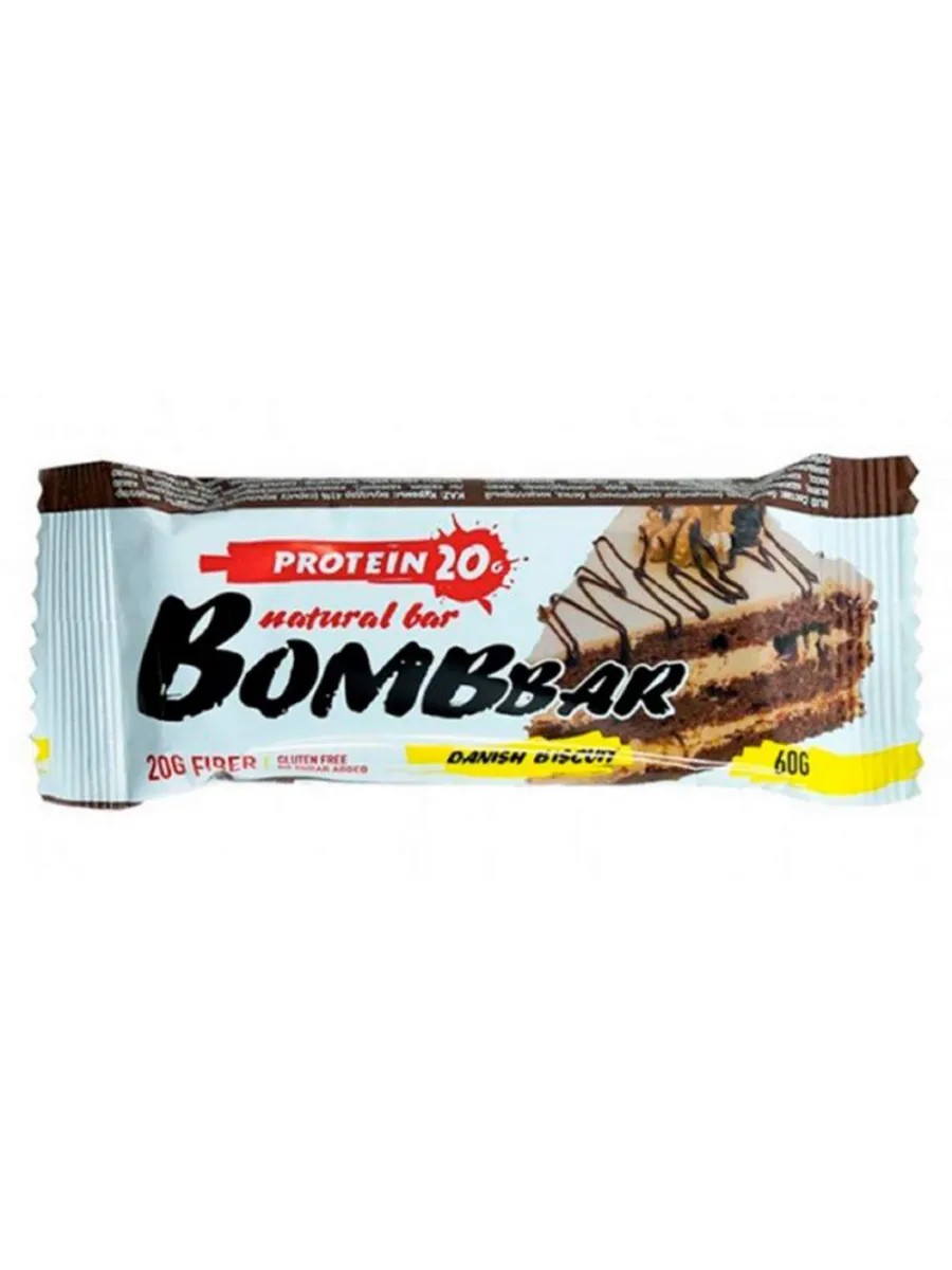 Батончик Bombbar неглазированный с протеином Датский бисквит, 60г.