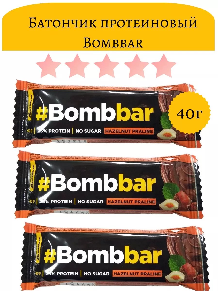 Bombbar Батончик протеиновый Фундучное пралине, 40г, 3шт