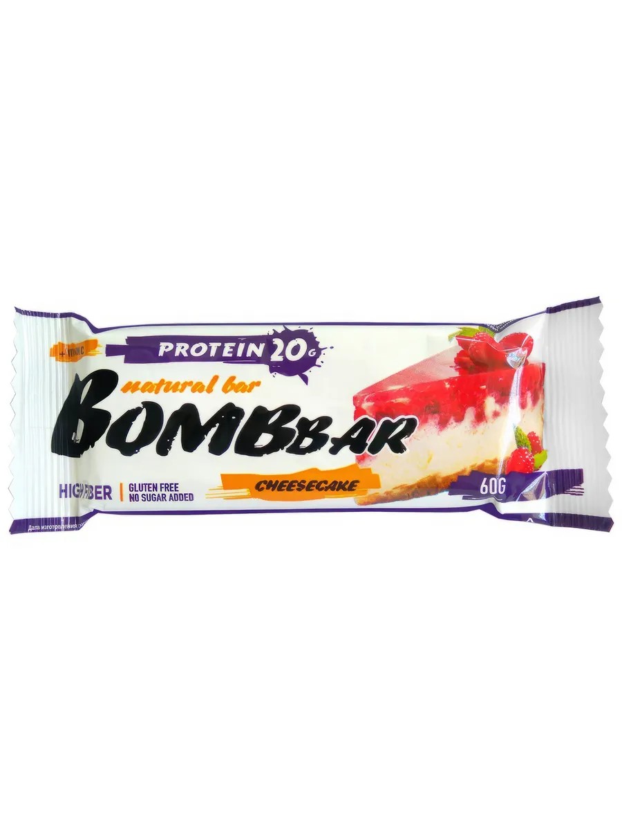 Bombbar Батончик протеиновый Малина-чизкейк без глютена, 60г
