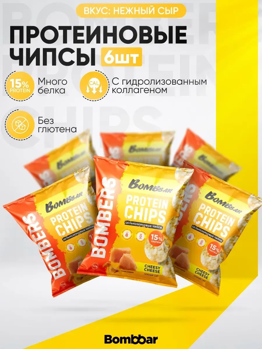 BombBar Чипсы протеиновые Сыр 50г, 6шт