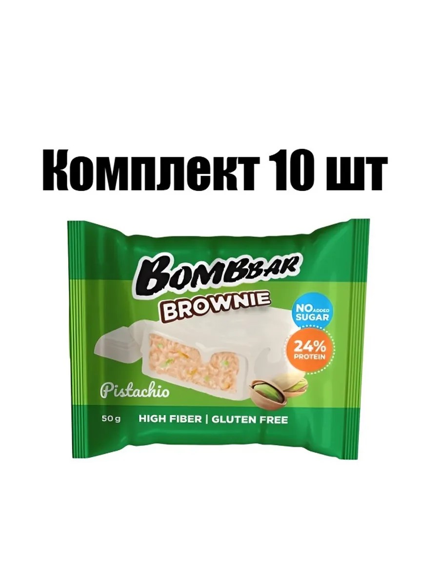 Bombbar Печенье протеиновое глазированное Брауни Фисташка без глютена и сахара, 50 г, 10 шт. Глазированное печенье «Брауни» Bombbar, 50 г — это вкусное и полезное лакомство Bombbar.