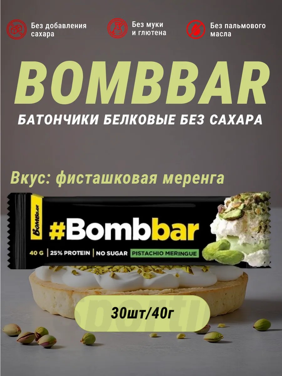 Энергетический батончик Bombbar без сахара фисташка 30шт