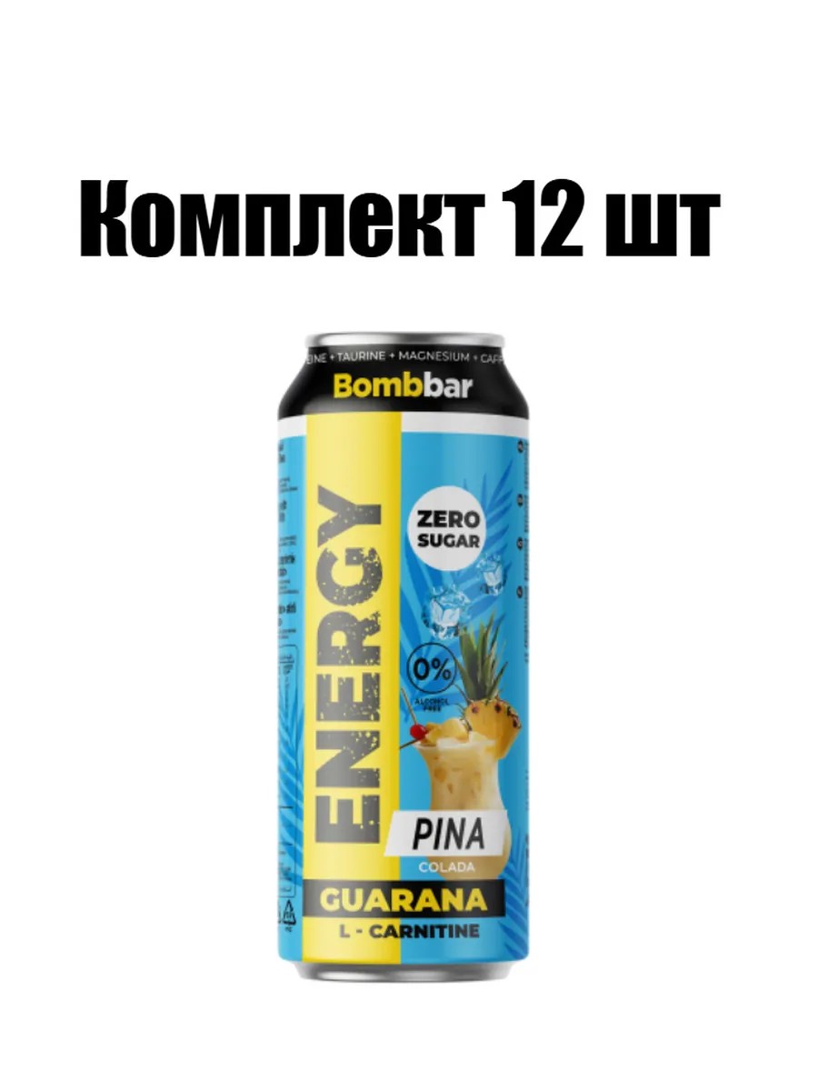 BOMBBAR Энергетический напиток L-Карнитин с гуараной со вкусом Пина колада, 450 мл, 12 шт. Энергетический напиток BOMBBAR L-Карнитин с гуараной — идеальный выбор для активных людей, которые хотят зарядиться бодростью без лишних калорий.