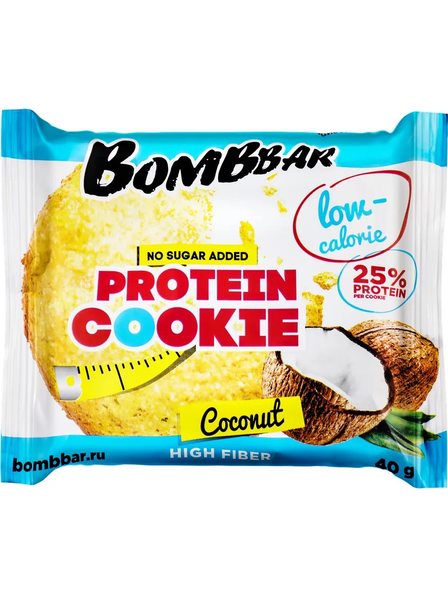 Bombbar Печенье низкокалорийное протеиновое Кокос, 40г