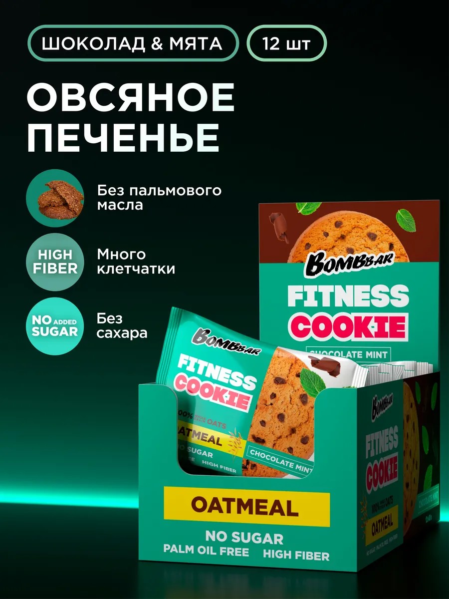 BombBar Овсяное печенье без сахара Fitness Шоколад Мята, 12 шт х 40г