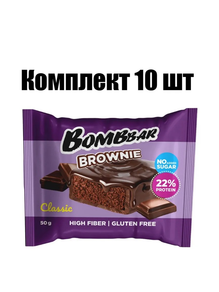 Bombbar Печенье протеиновое глазированное Брауни классический без глютена и сахара, 50 г, 10 шт. Глазированное печенье «Брауни классический» Bombbar, 50 г — это вкусное и полезное лакомство Bombbar.