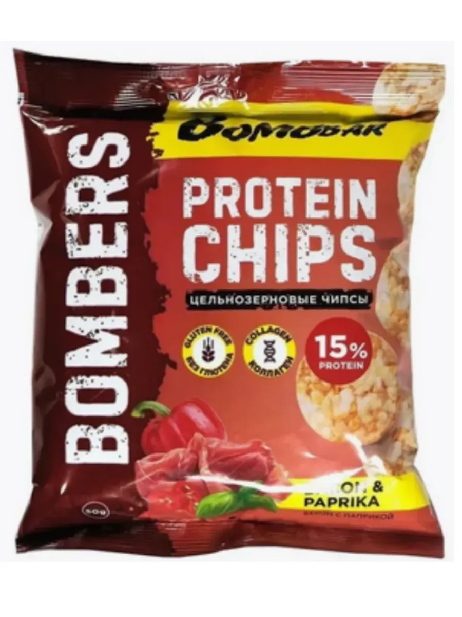 Bombbar Протеиновые чипсы цельнозерновые Бекон с паприкой