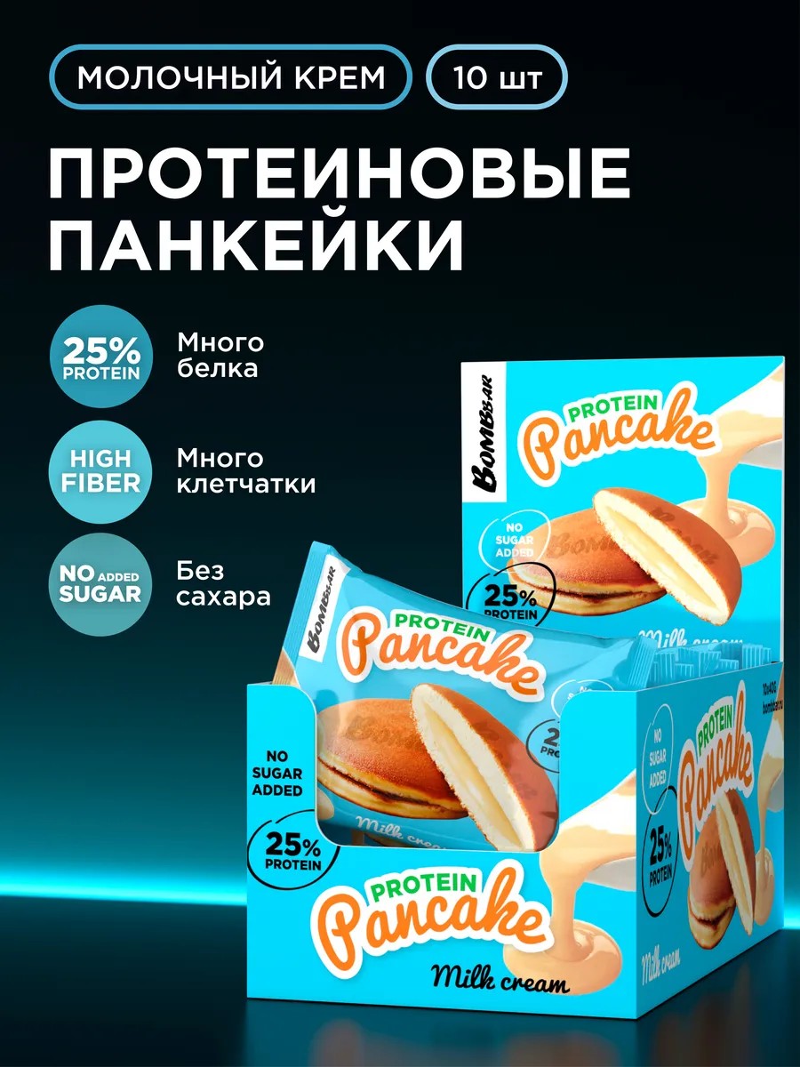 BombBar Протеиновые панкейки без сахара Молочный Крем, 10 шт х 40г
