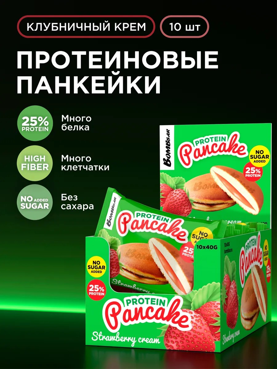 BombBar Протеиновые панкейки без сахара Клубника, 10шт х 40г