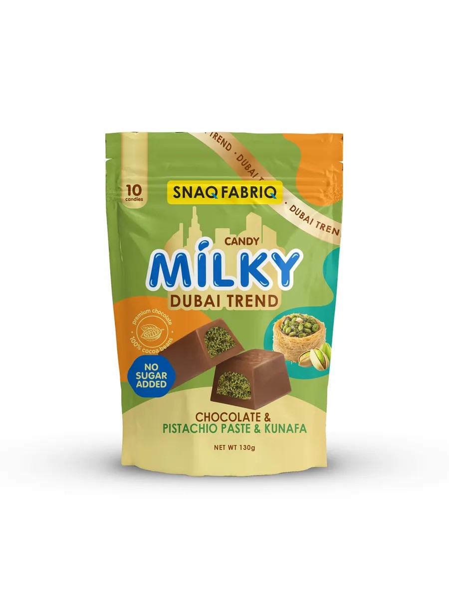 Bombbar SNAQ FABRIQ Milk chocolate candies with pistachio paste and crispy dough 130g are exquisite candies with a delicate milk glaze, melting pistachio filling and a delicious crunch inside.
