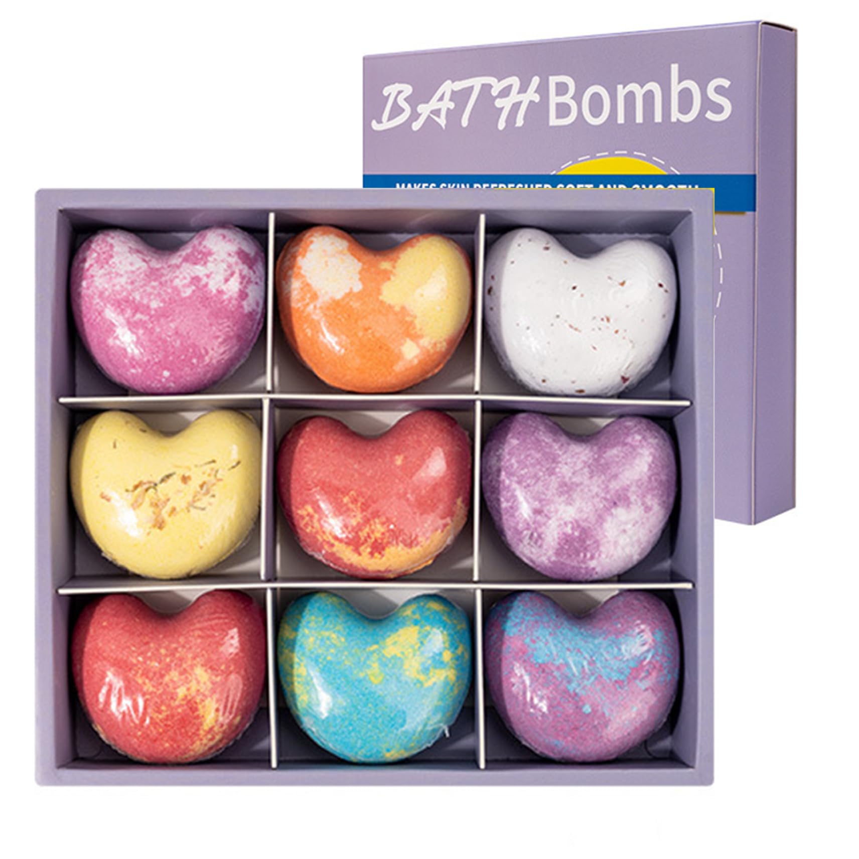 Bombe de bain ensemble 9 pcs bombes de bain en forme coeur avec kit bombe à huile essentielle