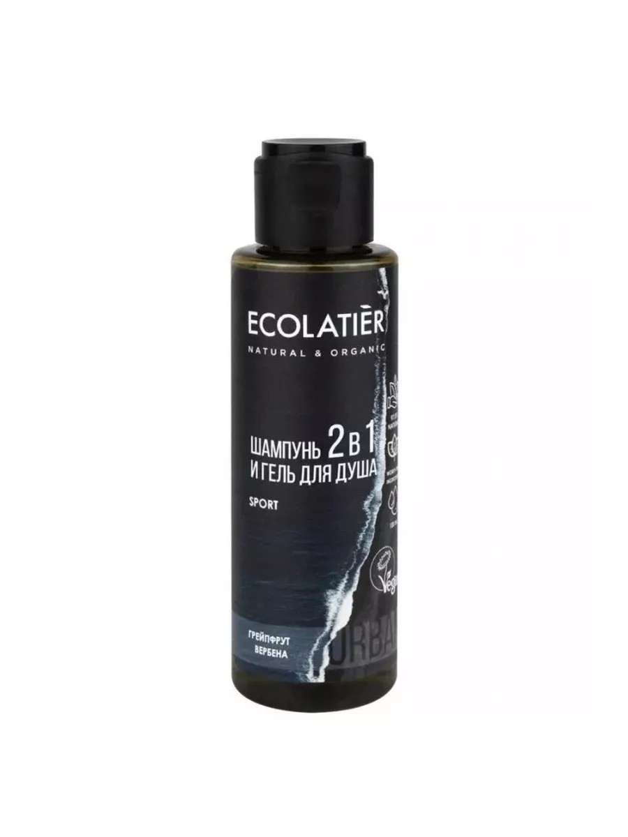 ECOLATIER URBAN МИНИ, Гель для душа+шампунь для мужчин 2в1 100мл. Грейпфрут&Вербена это прекрасное средство для бережного очищения волос и тела. Благодаря входящим в состав натуральным маслам и экстрактам, заботится о волосах и питает кожу. Дарит ощущение бодрости и свежести на целый день, даже в условиях городской суеты. Масло грейпфрута освежает, тонизирует, улучшает настроение, является природным антиоксидантом. Дает хороший тонизирующий и антистрессовый эффект после занятий спортом или активного рабочего дня. Экстракт вербены бодрит и тонизирует кожу, делая ее более упругой и свежей. Кожа очищается, питается, приобретает здоровый вид и эластичность. Эффект: приятное ощущение свежести и бодрости на весь день. Сок дерева Кротон Лехлера (Кровь Дракона), экстракт моринги, витамины В5, В6, С, Е стимулируют детокс клеток, регенерируют кожу, проявляют высокую антиоксидантную активность и улучшают барьерные функции кожи.