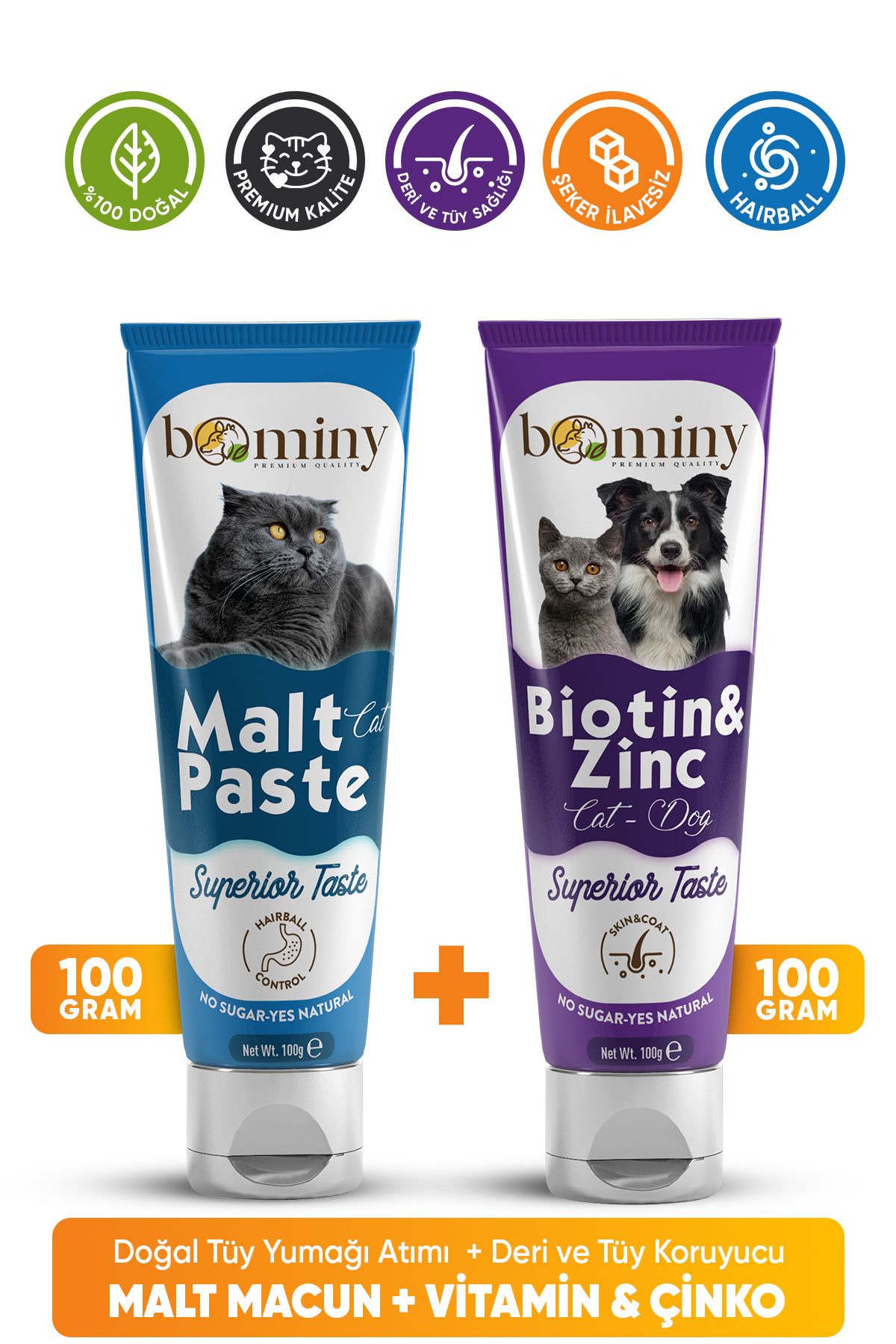 Thanks to its special ingredients, it provides a strengthening effect, protects skin health, and makes your cat or dog feel good. Thanks to the natural vegetable oils and high-quality malt extracts in BOMINY MALT PASTE, it ensures that swallowed hairballs and other indigestible components are naturally eliminated from the body. It contributes to protecting skin integrity (a source of MOS and B vitamins) in its content. Pure and natural aromatic malt, vegetable oil, dietary fibers and high-level MOS (mannanoligosaccharide) contain prebiotics (additives) that limit the colonization of pathogenic microorganisms in the intestines of animals, thus protecting animals against diseases. Cats swallow their hair as a result of licking, and these hairs accumulate in the gastrointestinal tract over time and can cause significant digestive problems that manifest themselves with symptoms such as loss of appetite and vomiting. Thanks to the natural oils and high-quality malt extracts in Malt Paste, it ensures that swallowed hairballs and other indigestible components are naturally eliminated from the body. Dietary