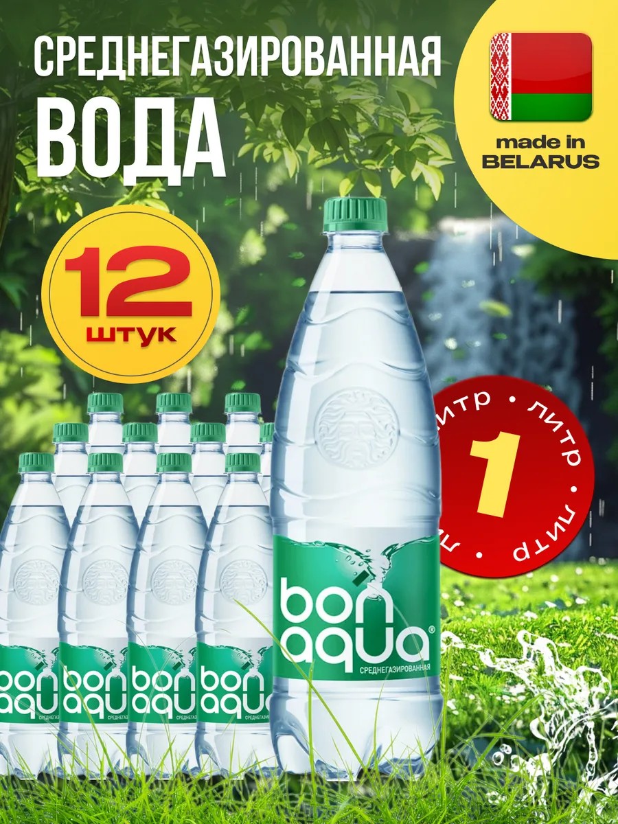 Bonaqua Вода питьевая Бонаква Среднегазированная 12 шт. по 1л.