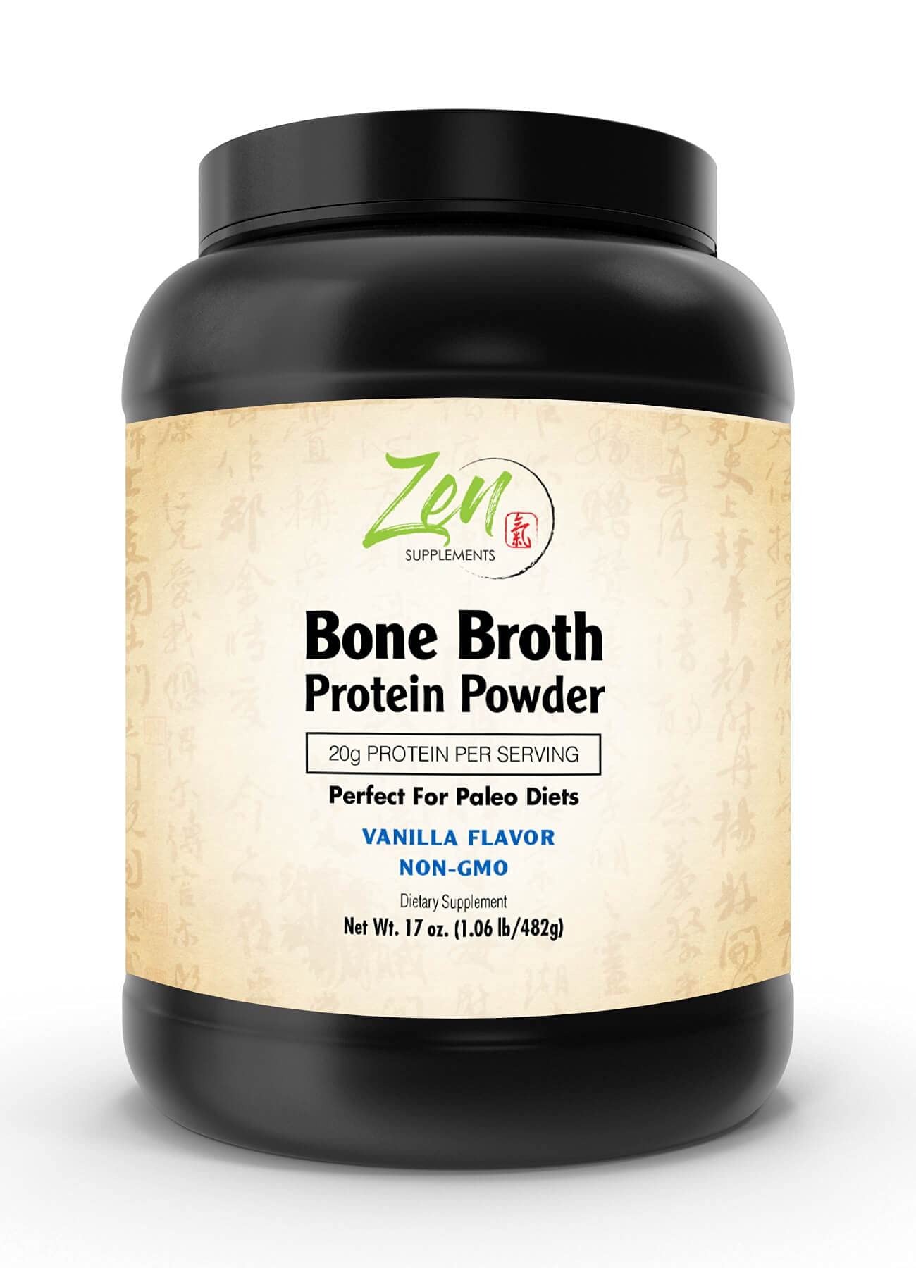 Zen Supplements - Bone Broth for Keto Diets and Paleo Diets - Vanilla 1 LB-Powder - 22g of Protein Per Serving -Promotes Joint Health, Gut Health, Hair, Skin Nails Health, Brain Health and Healthy Aging✓ QUALITY AND SATISFACTION GUARANTEED - 100 Non-GMO, Gluten Free, Dairy Free With NO Fillers, Added Sugar, Artificial Preservatives, Colors, or Flavors. Made Under Strict Quality Control Standards In FDA Registered, GMP-Certified USA Facilities, Using The Best Lab Tested Ingredients To Ensure Maximum Potency And Quality - Best Bone Broth Protein, Keto Protein Powder, Bone Broth Powder. ✓ SUPERIOR PROTEIN POWDER - Natural Pure Protein Powder Is Responsibly Sourced From Domestically Raised US Chickens. Mixes Easily In Any Liquid, Whether You Prefer Water, Milk, Or Coffee, And Makes Excellent Protein Shakes! Delicious Vanilla Protein Powder Flavored Naturally With Stevia Leaf, And Contains Absolutely NO Fructose, Glucose, Added Sugar, Or Artificial Sweeteners. ✓ BEST-IN-CLASS FORMULA - Premium Bone Broth Protein Is Low In Fat Carbs, And Has A Low Glycemic Load. Formula Contains Chicken Bone Broth Protein To Boost Workout Performance And Recovery. ✓ ATHLETIC PERFORMANCE AND RECOVERY - Pure Bone Broth Protein Powder Supports General Exercise Performance And Maximizes Your Workout Routine. Advanced Formula Helps Promote Muscle Growth And Recovery While Minimizing Muscle Tissue Breakdown Post-Workout. ✓ PURE NON-GMO PROTEIN - Sustainably Sourced Chicken Bone Broth Protein Delivers 20g Of Delicious Vanilla Flavored Protein In Just One Scoop! Bottle Includes (1Lb) Of Vanilla Protein Powder, (20) 1 Scoop Servings. ✓ PURE NON-GMO PROTEIN - Sustainably Sourced Chicken Bone Broth Protein Delivers 20g Of Delicious Vanilla Flavored Protein In Just One Scoop! Bottle Includes (1Lb) Of Vanilla Protein Powder, (20) 1 Scoop Servings.