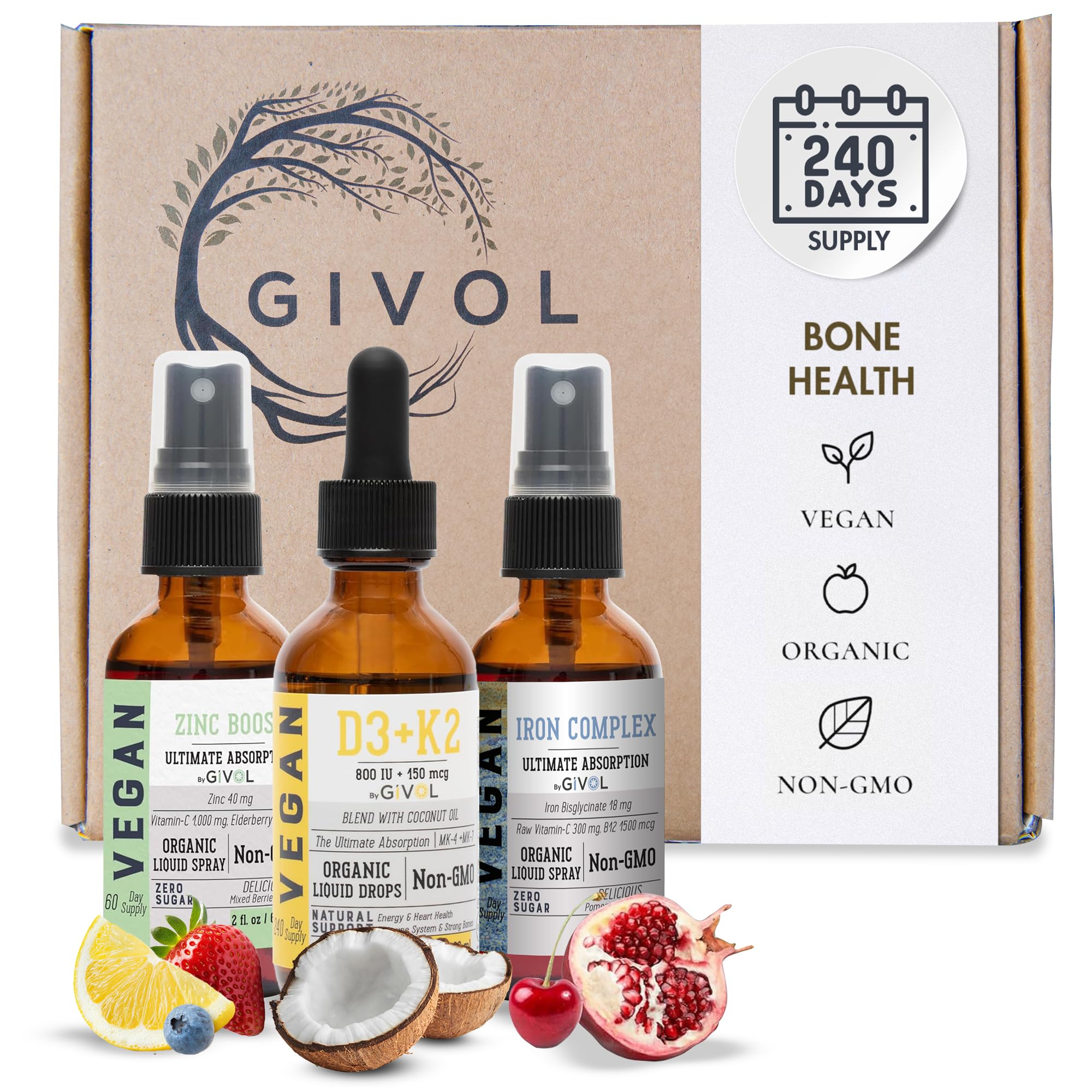 Bone Support Bundle Liquid Spray - Iron Bisglycinate Complex Zinc Picolinate Vitamin D3 & K2 - Complete Multivitamin - Plant- Based Non-GMO Gluten Free Sugar Free 2 Fl Oz (360 Days Supply) e) Zinc Boost-D3 + K2-Iron Co