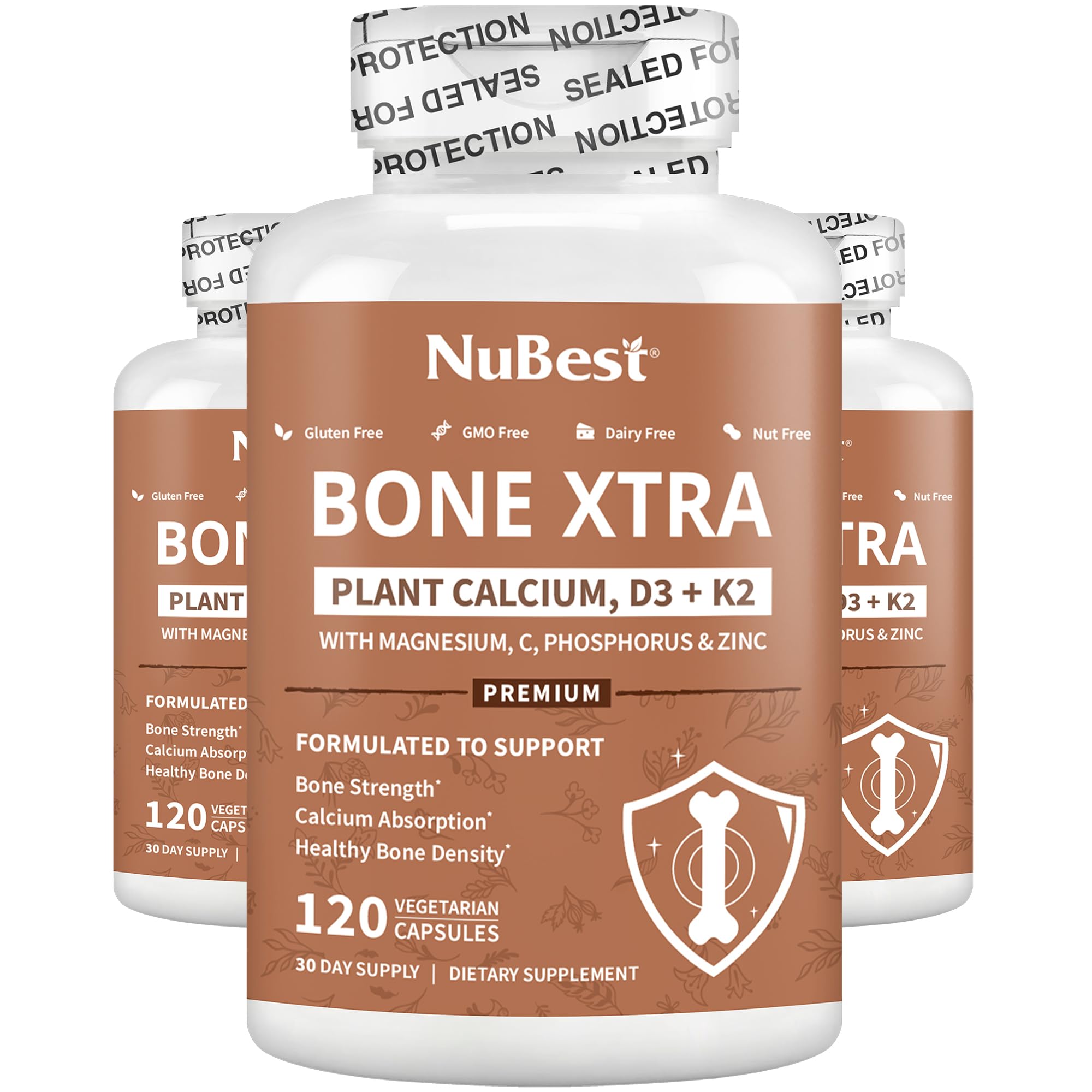 Bone Xtra - Vegan Bone Strength Formula for Stronger Bones Plant-based Calcium from Marine Algae Vitamins D3 Vitamin K2 Magnesium Phosphorus & More for Teens Adults - 3 Months Supply | 3 Pack