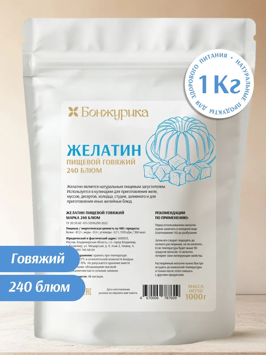 Бонжурика Желатин пищевой натуральный говяжий 240 bloom 1 кг