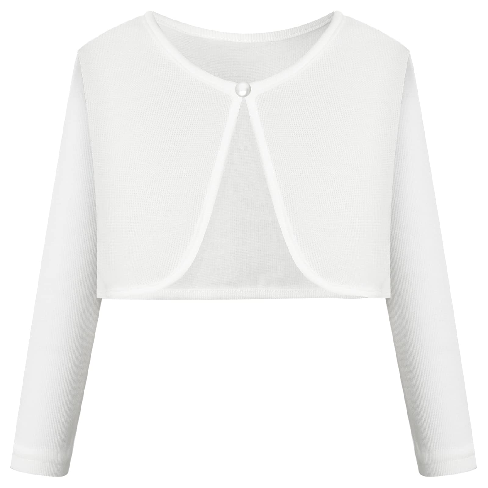 BONNY BILLY Girls Cardigan Long Sleeve Knitted Cotton Bolero Shrug Kids Clothing 4-5 Years White