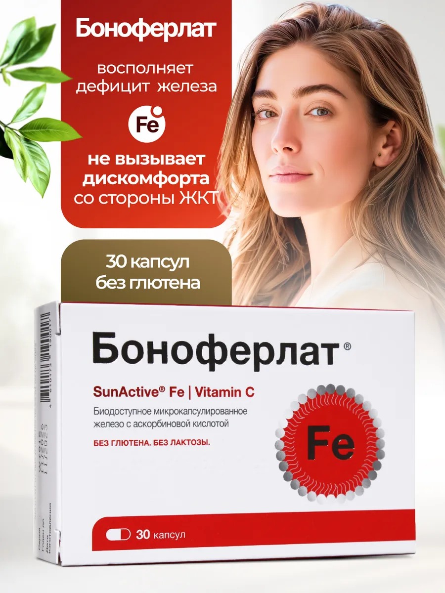 Bonoferlat is a biologically active food supplement in capsules, designed to replenish iron stores in the body and correct iron deficiency conditions, including during all trimesters of pregnancy.