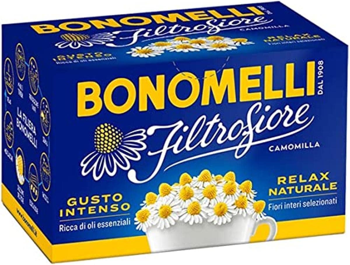 The Bonomelli filter is distinguished by its intense, characteristic fragrance, derived from chamomile, which is used in its entirety and is rich in active ingredients found in essential oils. In this way, the plant's rich and enveloping aroma is complemented by the relaxing and traditional properties of the whole flower, harvested at its peak. It is ideal for accompanying you in a pleasant moment of relaxation, in the evening or after main meals. Bonomelli respects nature: all materials are 100 recyclable. 100 Chamomile Flowers INGREDIENTS Whole Chamomile FlowersBonomelli was born in Milan in 1908 from the vision of Luigi Amedeo Bonomelli. Today, as then, it distinguishes itself through the constant pursuit of the perfect synthesis of taste and well-being. It is ideal for moments of natural relaxation: chamomile contributes to relaxation and psychophysical well-being. It is made from the selection of the finest chamomile crops in Italy and around the world, where the experience and expertise developed over more than 100 years of history allow Bonomelli to oversee every step of the production process, from field to cup. Leave the infuser in boiling water for 4 to 5 minutes. Once prepared, it can also be enjoyed cold, as it retains its full flavor and all its properties. Bonomelli Filtrofiore Chamomile contains whole chamomile flowers rich in essential oils and active ingredients, carefully selected to offer you a beverage with an intense aroma and incomparable taste.Bonomelli Camomille Filtrofleur 14 sachets, avec toutes les parties de la fleur, uniquement des capots entiers sélectionnés, arôme riche et enveloppant, infusion relaxante (28g)DESCRIPTION DU PRODUIT DESCRIPTION DU PRODUIT Le filtre Bonomelli se reconnaît par le parfum caractéristique intense donné par la camomille, utilisée dans toutes ses parties, riche en principes actifs contenus dans les huiles essentielles. De cette façon, l'arôme riche et enveloppant de la plante s'accompagne des propriétés relaxantes et traditionnelles de la fleur entière, récoltée au moment le plus vivant. Il est adapté pour vous accompagner dans un agréable moment de détente, le soir ou après les repas principaux. Bonomelli respecte la nature : tous les matériaux sont 100 recyclables. 100 Camomille Fleurs INGRÉDIENTS Fleurs entières de camomilleBonomelli naît à Milan en 1908 de l'intuition de Luigi Amedeo Bonomelli. Aujourd'hui, comme alors il se distingue par la recherche constante de la parfaite synthèse du goût et du bien-être. Il est idéal pour les moments de détente naturelle : la camomille contribue en effet à la relaxation et au bien-être psychophysique. Il est né de la sélection des meilleures cultures de camomille en Italie et dans le monde, où l'expérience et les compétences développées en plus de 100 ans d'histoire permettent aujourd'hui à Bonomelli de suivre chaque étape de la filière productive du champ à la tasse. Laissez le filtre à infusion dans l'eau bouillante pendant 4 à 5 minutes. Une fois préparée, elle peut également être goûtée froide car elle conserve intacte le goût et toutes ses propriétés. La camomille Filtrofiore Bonomelli contient des fleurs entières de camomille riches en huiles essentielles et principes actifs, sélectionnées avec soin pour vous offrir une boisson au parfum intense et au goût incomparable.