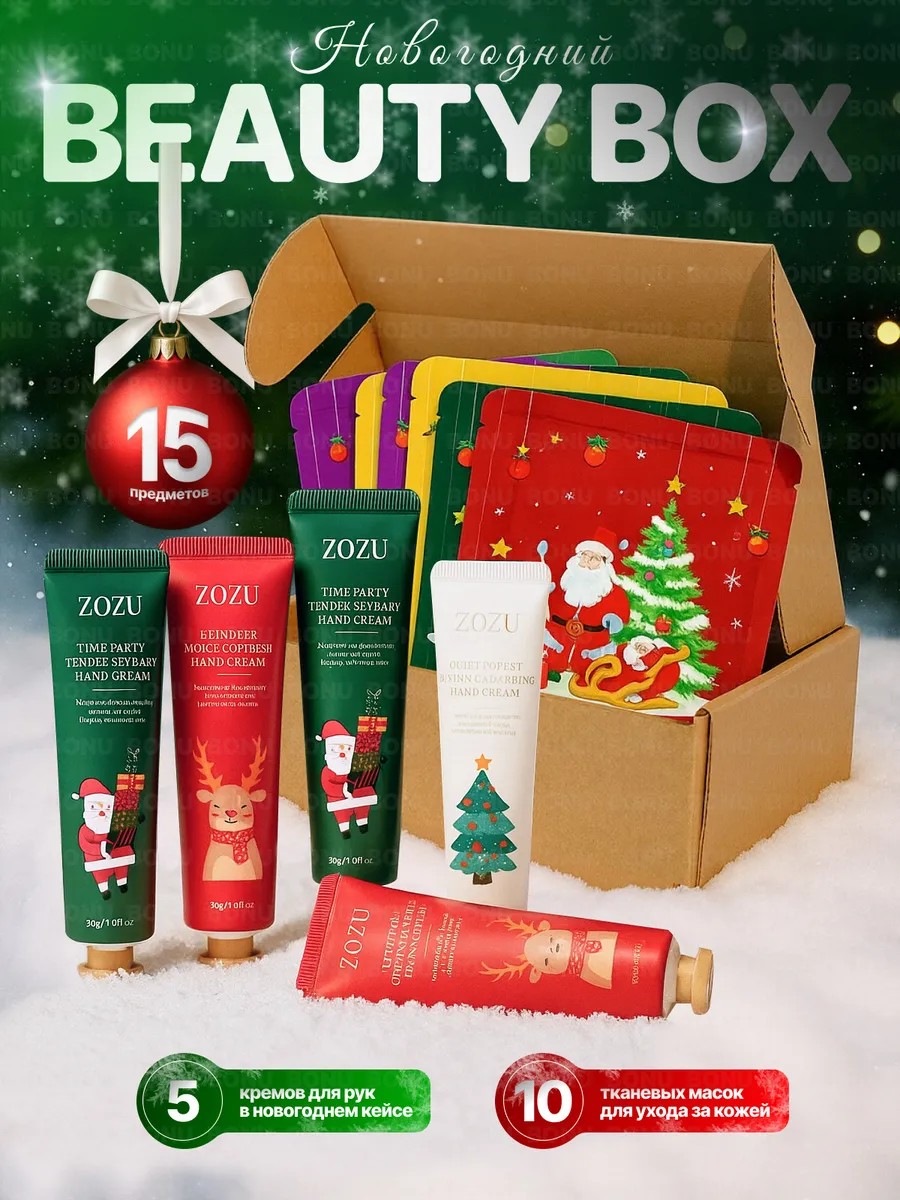 BONU COSMETIC'S Набор масок для лица тканевая новогодняя и крем для рук