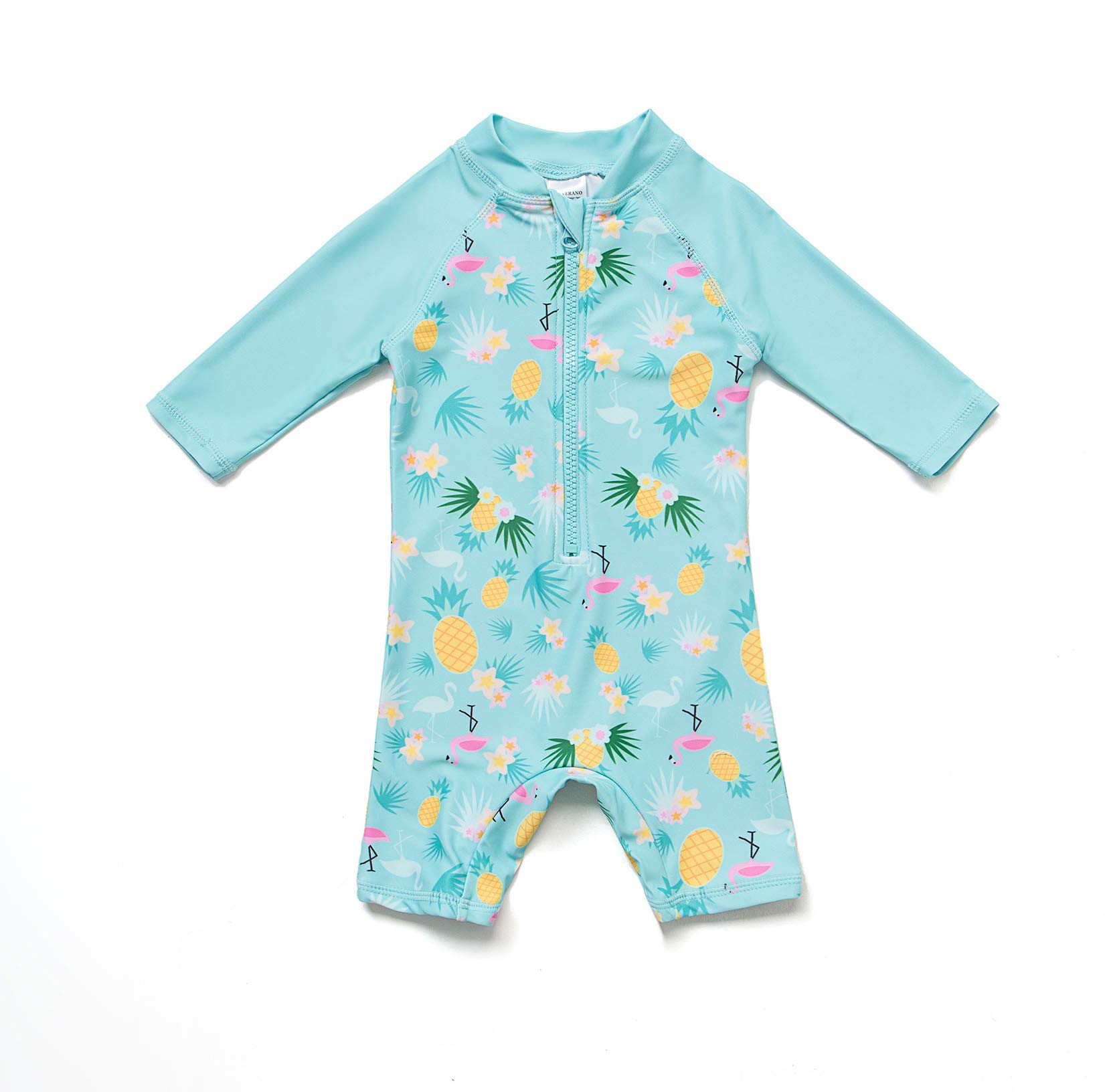 Bonverano Baby Girls UPF 50+ UV Protection One Pieces Sunsuit with Sun Cap(Blue Pineapple 18-24Months) One Size Pineapple