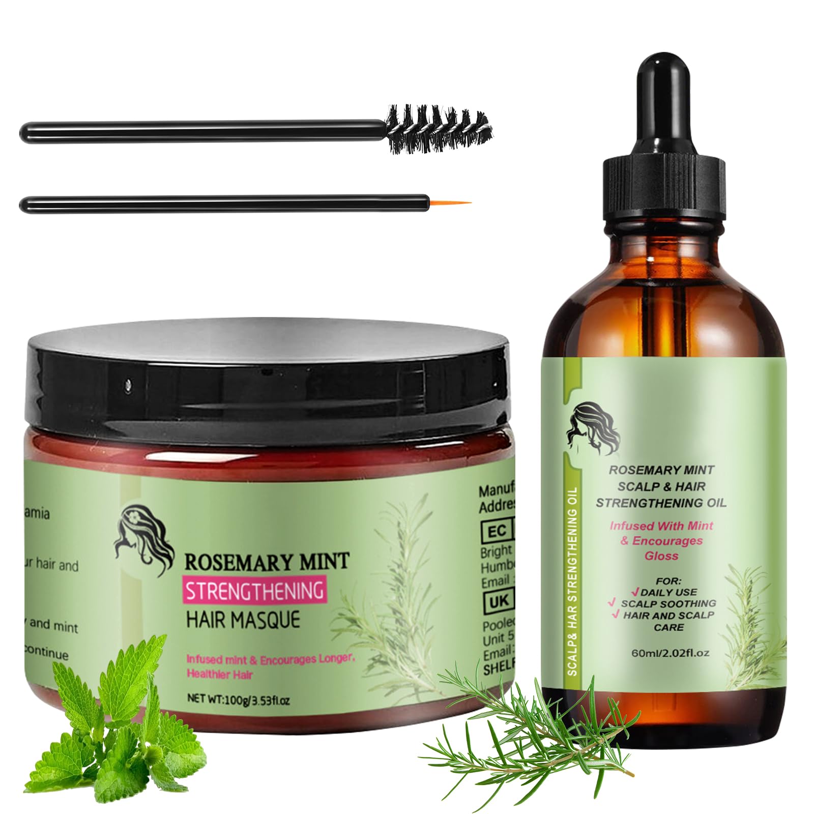 Set of 2 Rosemary Hair Masks (100g and 60ml) with Rosemary Oil - Natural Organic Rosemary Essential Oil for Dry and Damaged Hair Our natural hair treatment oil with pure rosemary essential oil effectively nourishes hair, reduces breakage and hair loss, and provides the necessary nutrients for added volume and shine. It moisturizes, minimizes frizz, and gives hair a healthier, more manageable appearance. Rosemary essential oil provides hair with the nutrients it needs to regain its natural suppleness and shine, making it softer, fuller, and shinier. Rosemary oil improves dry and damaged hair, repairs split ends, prevents breakage, and promotes healthier hair. This all-natural hair treatment essential oil significantly improves hair volume by stimulating the scalp and hair follicles. Specifications: Product Name: Rosemary Hair Oil Sizes: 100g and 60ml Quantity: 2 pieces Package Size: As shown in the image Package Contents: 1 x 60ml Rosemary Hair Oil 1 x 100g Hair Mask Tips: For external use only. In case of contact with eyes, rinse thoroughly with water. We recommend applying rosemary hair oil to your skin before applying it to your hair for a patch test. INGREDIENTS All Natural DIRECTIONS Apply the natural hair oil daily directly to the scalp. Apply to dry hair or after showering while hair is still slightly damp. Simply massage for 2 to 3 minutes until fully absorbed. SAFETY WARNING For external use only. Keep away from open flames and direct heat sources. See more Set of 2 Rosemary Hair Masks (100g and 60ml) with Rosemary Oil - Natural Organic Rosemary Essential Oil for Dry and Damaged Hair Our natural hair treatment oil with pure rosemary essential oil effectively nourishes hair, reduces breakage and hair loss, and provides the necessary nutrients for added volume and shine. It moisturizes, minimizes frizz, and gives hair a healthier, more manageable appearance. Rosemary essential oil provides hair with the nutrients it needs to regain its natural suppleness and shine, making it softer, fuller, and shinier. Rosemary oil improves dry and damaged hair, repairs split ends, prevents breakage, and promotes healthier hair. This all-natural hair treatment essential oil significantly improves hair volume by stimulating the scalp and hair follicles. Specifications: Product Name: Rosemary Hair Oil Sizes: 100g and 60ml Quantity: 2 pieces Package Size: As shown in the image Package Contents: 1 x 60ml Rosemary Hair Oil 1 x 100g Hair Mask Tips: For external use only. In case of contact with eyes, rinse thoroughly with water. We recommend applying rosemary hair oil to your skin before applying it to your hair for a patch test. INGREDIENTS All Natural DIRECTIONS Apply the natural hair oil daily directly to the scalp. Apply to dry hair or after showering while hair is still slightly damp. Simply massage for 2 to 3 minutes until fully absorbed. SAFETY WARNING For external use only. Keep away from open flames and direct heat sources. See moreOrganics - Lot de 2 masques fortifiants à l'huile essentielle de romarin bio pour cheveux secs - 100 g et 60 mlDESCRIPTION DU PRODUIT DESCRIPTION DU PRODUIT Lot de 2 masques capillaires au romarin 100 g et 60 ml à l'huile de romarin pour cheveux - Huile essentielle naturelle de romarin bio pour cheveux secs et abîmés Notre huile de soin naturelle à l'huile essentielle de romarin pure nourrit efficacement les cheveux, réduit la chute et la casse des cheveux et les fournit les nutriments nécessaires pour plus de volume et de brillance. Il hydrate, minimise les frisottis et donne aux cheveux un aspect plus sain et plus souple. L'huile essentielle de romarin apporte aux cheveux les nutriments dont ils ont besoin pour retrouver leur souplesse naturelle et leur brillance, les rendant plus souples, volumineux et brillants. L'huile de romarin améliore les cheveux secs et abîmés, répare les pointes fourchues, prévient la casse et favorise des cheveux plus sains. Cette huile essentielle de soin capillaire entièrement naturelle améliore considérablement le volume des cheveux en stimulant le cuir chevelu et les follicules pileux. Spécifications: Nom du produit : huile de romarin pour cheveux. Styles : 100 g et 60 ml Quantité : 2 pièces. Taille de l'emballage : comme indiqué sur l'image. Contenu de la livraison : 1 huile de romarin pour cheveux de 60 ml. 1 masque capillaire de 100 g. Conseils : Pour un usage externe uniquement. En cas de contact avec les yeux, rincer abondamment à l'eau. - Nous vous recommandons d'appliquer de l'huile de romarin pour le soin des cheveux sur la peau avant l'application pour un test topique. INGRÉDIENTS Tout à fait naturel MODE D'EMPLOI Appliquez quotidiennement l'huile de soin naturelle directement sur le cuir chevelu. Appliquer sur cheveux secs ou après la douche lorsque les cheveux sont encore légèrement humides. Il suffit de masser pendant 2 à 3 minutes jusqu'à ce qu'elle soit complètement absorbée. AVERTISSEMENT DE SÉCURITÉ Usage externe uniquement. Tenir à l'écart du feu ouvert et des sources de chaleur directes. Voir plus? POUR TOUS TYPES DE CHEVEUX - Notre huile de soin capillaire convient à toute la famille, que vos cheveux soient normaux, secs, gras, ternes ou abîmés. Il est efficace pour réduire la perte de cheveux et les problèmes de calvitie. ? Facile à utiliser : appliquez quotidiennement l'huile de soin capillaire naturelle directement sur votre cuir chevelu. Vous pouvez l'utiliser sur cheveux secs ou après la douche lorsque vos cheveux sont encore légèrement humides. Il suffit de le masser pendant 2 à 3 minutes pour qu'il pénètre complètement. Cette huile de soin capillaire est facile à utiliser et vous donne des cheveux parfaits chaque jour. ? Nourrit les cheveux complets : l'huile de romarin améliore les cheveux secs et abîmés, répare les pointes fourchues, prévient la casse et favorise des cheveux plus sains. Cette huile essentielle de soin capillaire entièrement naturelle amé