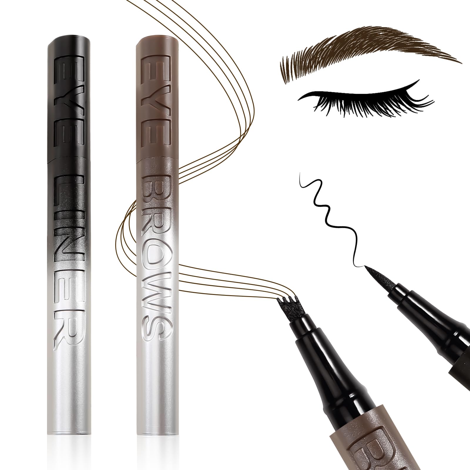 Beautiful Gift : It's perfect for dates, parties, weddings, bars, proms, camping, the office, school, and everyday makeup to create a charming 3D eye look. The lovely packaging makes it a great holiday gift for yourself, family, loved ones, and friends. Waterproof and Long-Lasting : The waterproof eyebrow pencil and smudge-proof eyeliner feature a quick-drying formula, ensuring your makeup stays flawless all day, even during sweat, rain, and water activities. Multi-Purpose : The eyebrow filler pencil and liquid eyeliner are designed to fill in gaps in your eyebrows, define hairlines, create eyeliner looks, and enhance lower lashes. Their compact size makes them easy to slip into your makeup bag or purse for quick and easy access. Precision Makeup Pencils : The eyebrow pencil features a 4-pronged tip for precise and effortless application, while the ultra-fine eyeliner allows for crisp, defined lines. Perfect for creating a variety of sophisticated and bold makeup looks. Makeup Pencil Set : This eyebrow pencil set includes a brown eyebrow pencil and a black eyeliner, both with precision tips to meet your needs for accurately defining eyebrows and creating various eye makeup looks.Belle cadeau :Il est parfait pour les rencontres, les fêtes, les mariages, les bars, les proms, le camping, le bureau, l'école et le maquillage quotidien pour créer un maquillage des yeux 3D et charmant. Joli emballage peut être utilisé comme un cadeau de vacances pour vous-même, la famille, l'amant et les amis. L'imperméabilité et la longue durée : Le crayon à sourcils imperméable et l'eyeliner anti-bavures sont dotés d'une formule à séchage rapide, garantissant que votre maquillage reste impeccable toute la journée, même en cas de transpiration, de pluie et d'activités aquatiques. Multi-usage : Le crayon combleur de sourcils et l'eyeliner liquide sont conçus pour combler les trous dans les sourcils, définir les lignes de cheveux, créer des looks d'eyeliner et rehausser les cils inférieurs. De taille compacte, ils se glissent facilement dans votre trousse de maquillage ou votre sac à main pour un accès rapide et facile. Crayons de maquillage de précision : Le crayon contour des sourcils est doté d'une pointe à 4 fourches pour une application précise et sans effort, tandis que l'eyeliner ultrafin permet d'obtenir des lignes nettes et définies. Parfait pour créer une variété de looks de maquillage raffinés et audacieux. Série de crayons de maquillage : Cet ensemble de crayons à sourcils comprend un stylo à sourcils brun et un eyeliner noir, doté d'une pointe précise pour répondre à vos besoins en matière de définition précise des sourcils et de divers looks de maquillage des yeux.Boobeen Crayons à sourcils liquides imperméables avec pointes à 4 fourches, 2 pièces, set de crayons à sourcils et d'eye-liner pour microblading, pour un maquillage naturel des yeux 2 unité (Lot de 1) Noir et brun foncé