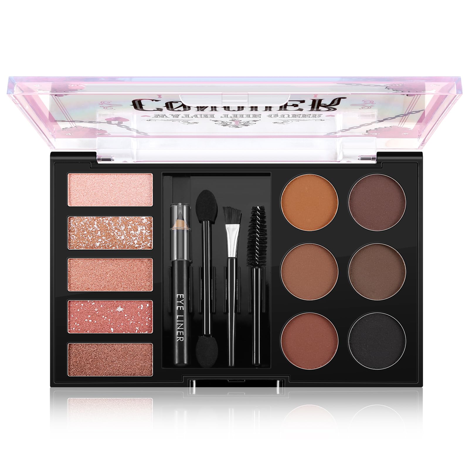 Ideal Gift: This eyebrow contouring kit can help you design your own eye makeup quickly, suitable for different occasions, travelling, business trips, parties. And it's also a perfect gift for. female friends or family members!. Meeting All Needs: This perfect brow powder set, 1 palette does most facial makeup, like eyeshadow, brows, eyeliner, nose shadow, contouring and hairline powders, and more. Even beginners can use it easily. Create Natural-looking Brows: The powder is delicate and smooth, highly pigmented, no flyaway or caking. Soft and natural shades, easy to create natural hair flu eyebrows, meet your different hair color matching. Long-lasting & Waterproof: This brow powder and eyeshadow combo is formulated with a waterproof and sweatproof formula that keeps brows looking full and voluminous all day long, eye shadow won't smudge or transfer. Multi-Purpose Eyebrow Set: Boobeen waterproof eyebrow kit includes 6 eyebrow powders, 5 colors of shimmer eyeshadow, 3 eyebrow brush and 1 eye liner pencil. Suit all skin tones.