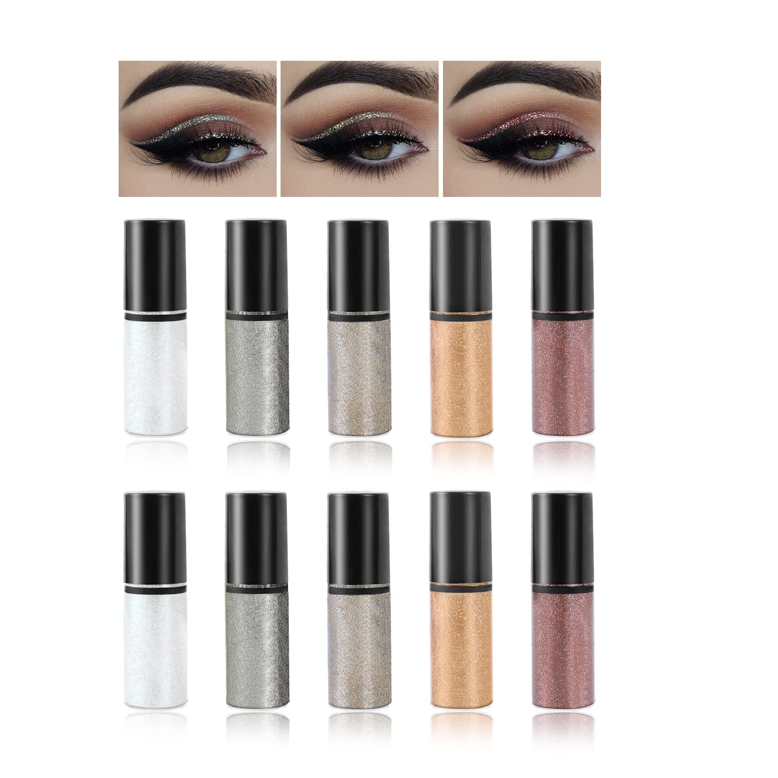 Boobeen 10 PCS 5 Farben Liquid Glitter Lidschatten Set Pearl Glitter Shimmer Eyeliner Makeup Langanhaltend Schnelltrocknend Brilliant Wasserdicht Funkelnder C10