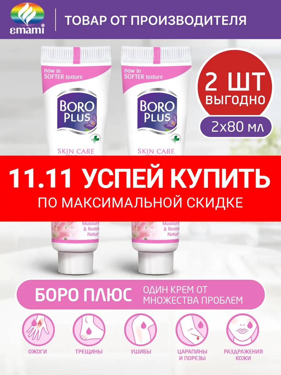 Крем для лица и тела Боро плюс – уходовое средство с интенсивным восстанавливающим, смягчающим и регенерирующим действием! Косметика от известного бренда имеет комплексный питающий состав с натуральными компонентами, подобранными для вашей красоты и здоровья. Косметическое средство с противовоспалительным и успокаивающим эффектом помогает снять раздражение и способствует быстрому восстановлению кожи, заживлению ран от порезов, ожогов и трещин. Это хороший выбор для обогащения и укрепления дермы после долгого пребывания на морозе или прогулок под солнцем. Универсальная лечебная формула с легкой текстурой включает солодку и алоэ вера, которые увлажняют и питают эпидермис. Масло гарцинии помогает бороться против пигментных пятен и способствует заживлению рубцов. Несмываемый крем с антисептическим и бактерицидным эффектом подойдет для жирной, сухой и проблемной дермы и зоны вокруг глаз. Это хороший выбор для взрослых женщин и мужчин со зрелой кожей, молодых девушек и парней или девочек - подростков. Профессиональная защитная чудо – формула с комплексом трав поможет в ежедневном уходе за новорожденным и точно пригодится для обработки ножек и ручек или шейки ребенка. Боро плюс станет секретом красоты и здоровья детского и возрастного эпидермиса. Состав с ингредиентами премиум – качества поможет снять ощущение сухости не забивая поры. Он подходит для применения утром или вечером и поможет защитить от последствий ветра и мороза во время зимы. Популярная смягчающая мазь поставляется в очень удобном тюбике объемом 25 и 50 или 80 мл. В нашем магазине вы найдете наборы из двух емкостей с Боро плюс разного объема. Формула обеспечит эффективный увлажняющий и смягчающий результат. Простое в использовании супер - средство можно использовать дома или брать с собой в поездки. Оно поможет снять зуд и раздражение после укусов насекомых. Боро Плюс регулярный крем, Боро Плюс, травяной, Боро Плюс крем без запаха и Боро Плюс СОФТ. Крем СОФТ – тот же Боро Плюс, но с более легкой текстурой.