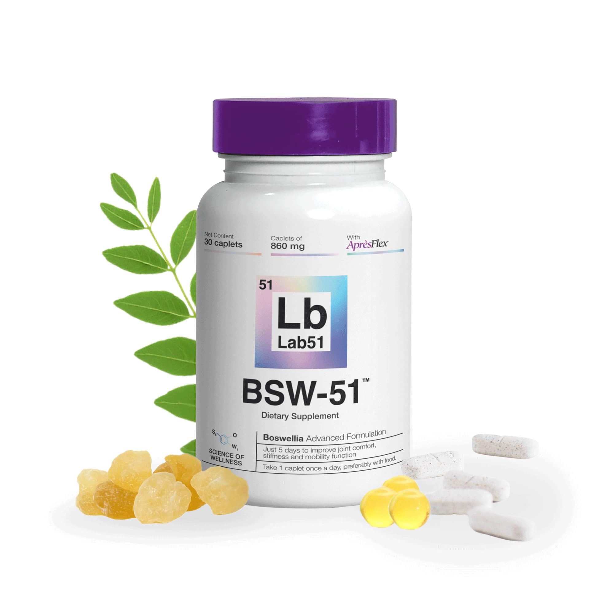 Boswellia Serrata Apr sFlex Advanced Joint Support BSW-51 with Hyaluronic Acid Type II Collagen & Piperine 30 Capsules 860 mg Each Supports Mobility Flexibility & Cartilage Health