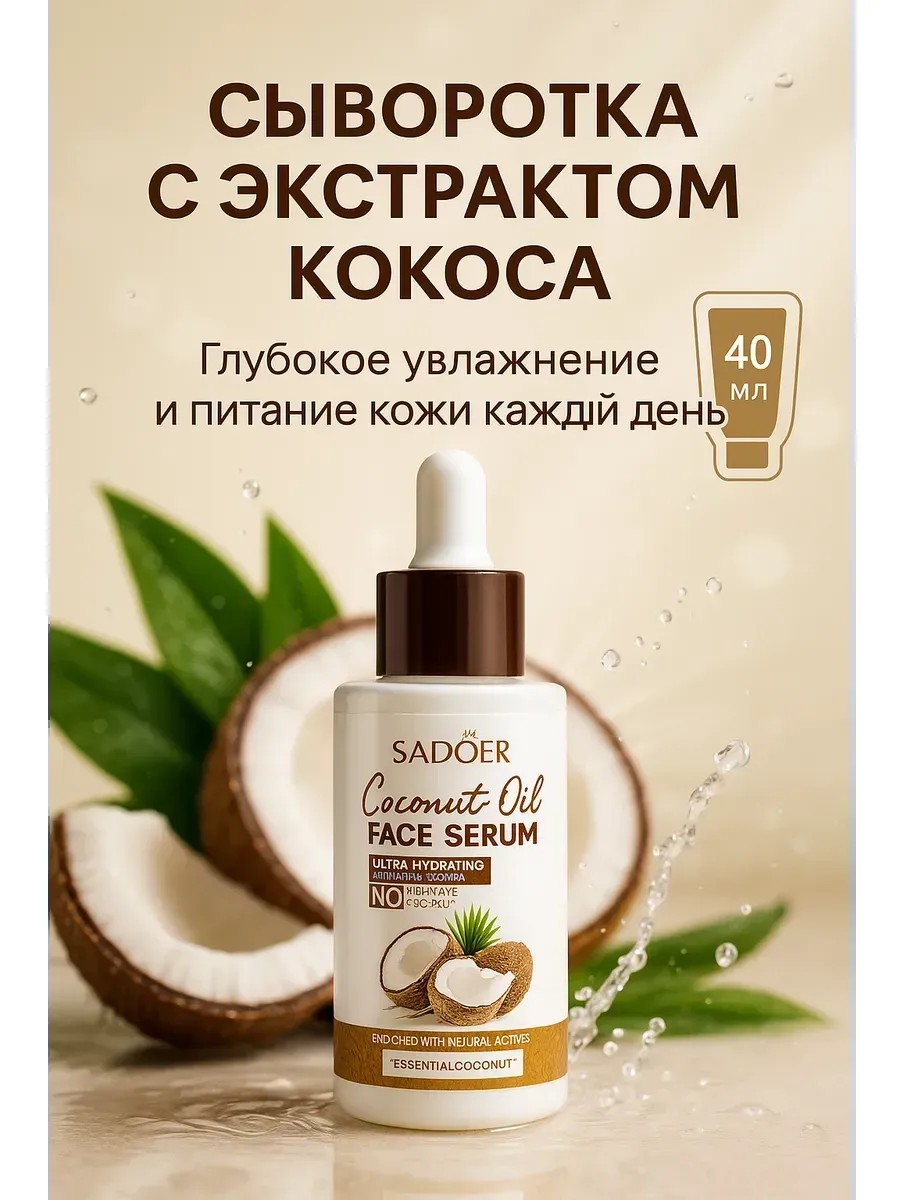Попробуйте Sadoer Coconut Oil Face Serum — и уже после первых применений вы заметите, как кожа становится гладкой, мягкой и увлажнённой.