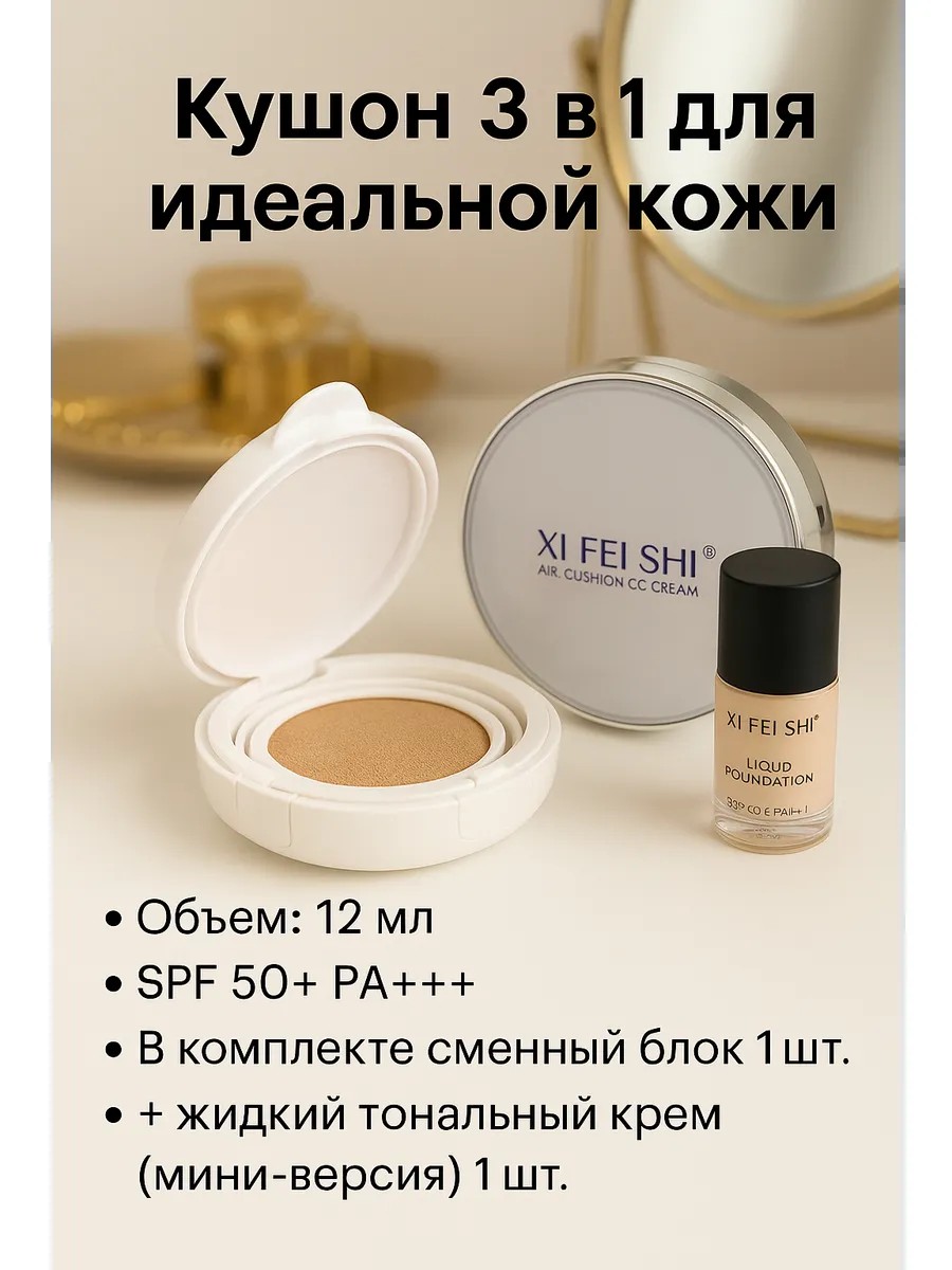 Кушон для лица XI FEI SHI Air Cushion CC Cream – это современное тональное средство, которое сочетает в себе преимущества тонального крема, пудры и праймера. Благодаря инновационной технологии air cushion средство легко наносится и равномерно распределяется по коже, создавая естественное, безупречное покрытие.