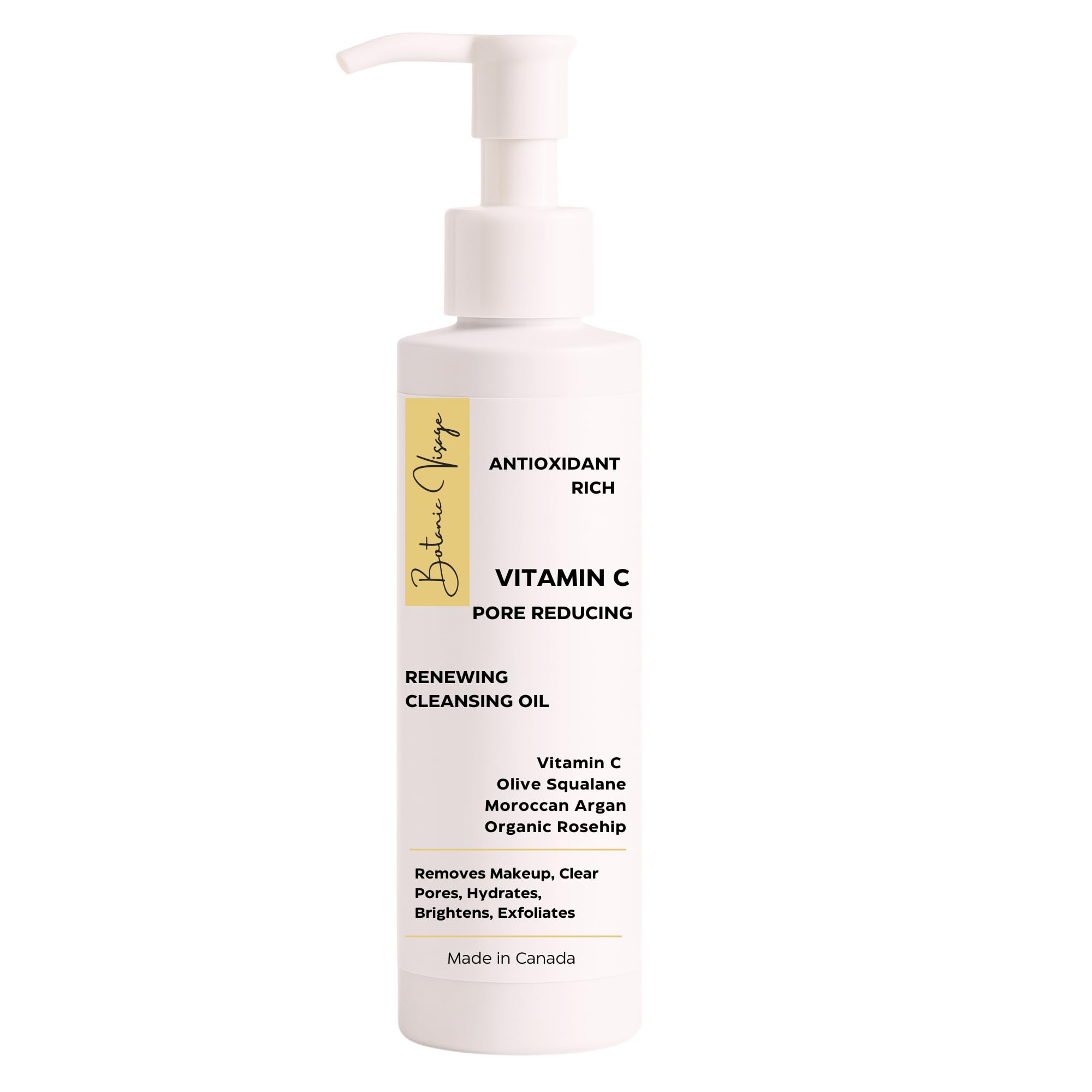 Botanic Visage Cleansing Vitamin C Oil For Face | Makeup Remover Oil & Pore Minimizer | Hydrates & Brightens Skin - 99% Natural Vegan Moroccan Argan & Olive Squalane Korean Skincare