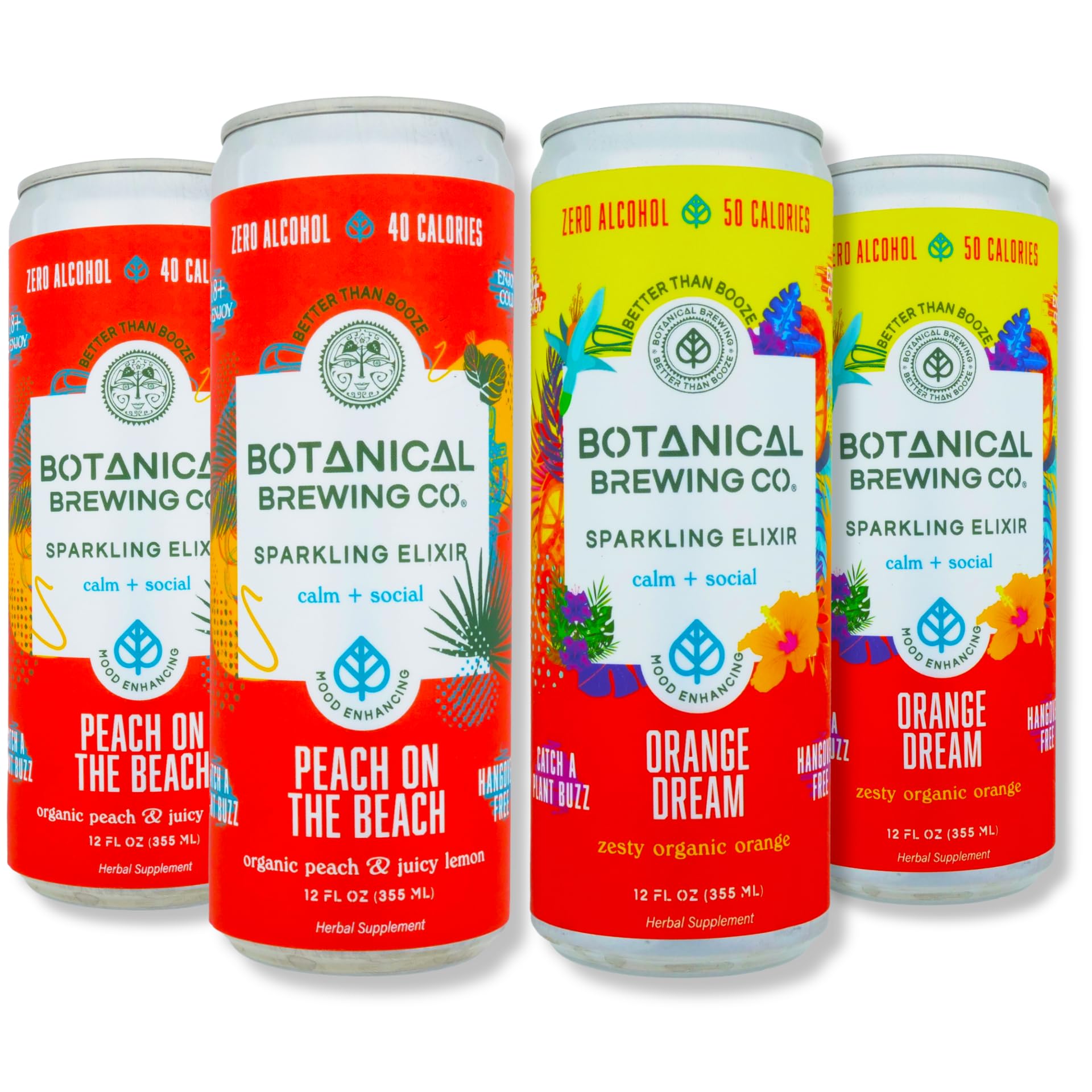 Botanical Brewing Peach & Orange Mix Duo - Kava Drink with Kava Root Extract | Refreshing & Sparkling Kava Seltzer | Alcohol-Free Vegan & Low-Calorie Naturally Sweetened Agave 12 Fl oz Cans 4-Pack Peach & Orange Pack of 4